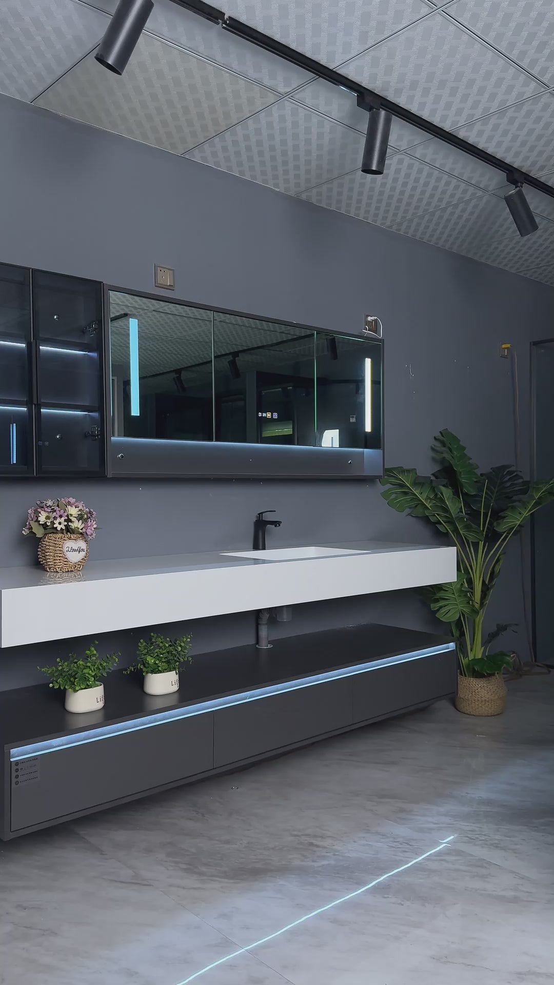 36"- 72" Single Basin Wall Mounted Bathroom Vanity Set with LED Defogging Mirror Cabinet