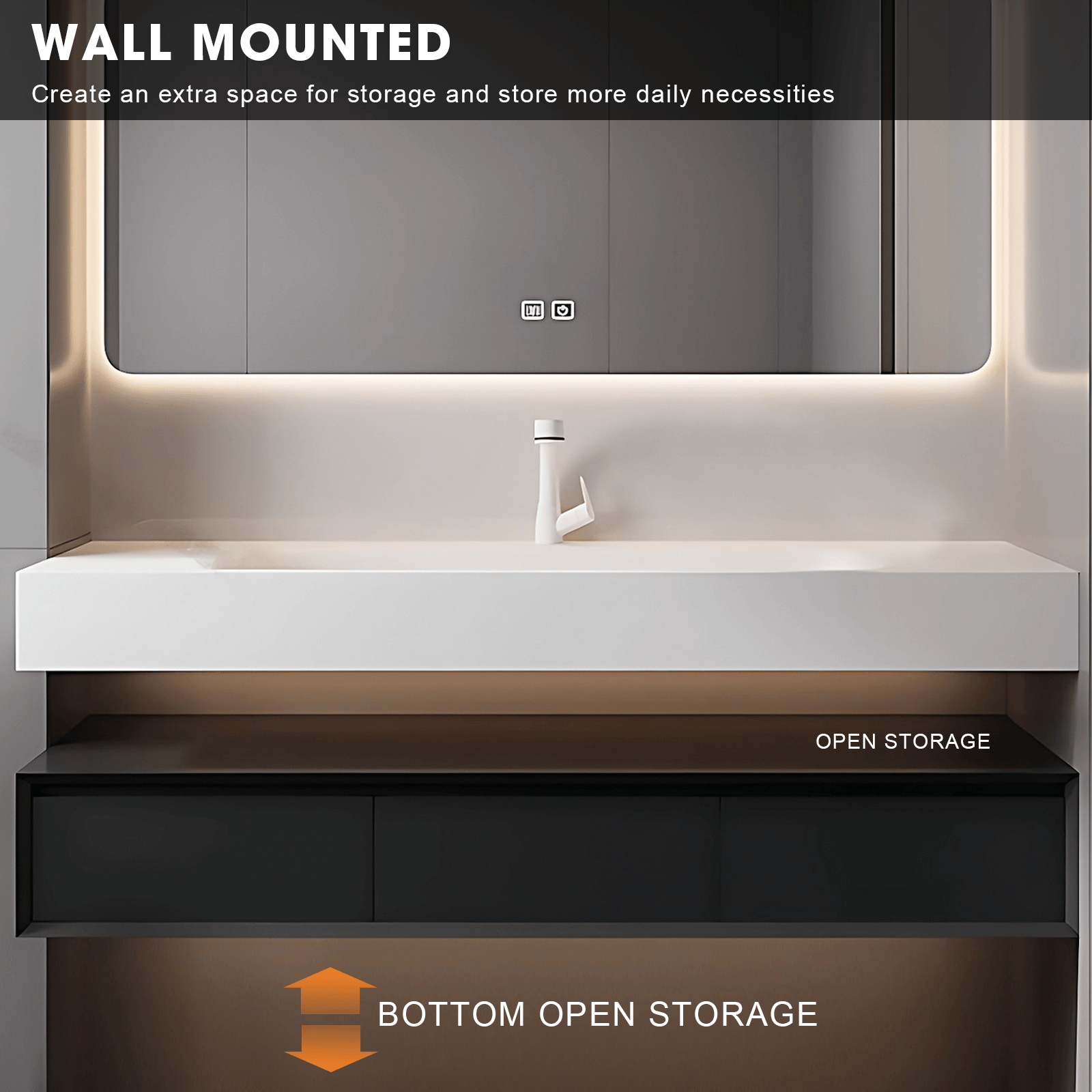 Hanging Storage Space: Experience the convenience of our hanging storage cabinets, which are engineered to optimize both aesthetics and storage capacity. The innovative hanging configuration not only enhances the overall aesthetics, but also maximizes storage potential by creating ample open space underneath. Featuring dedicated areas for efficient organization, our hanging storage cabinets provide luxurious and spacious storage solutions to suit your needs.