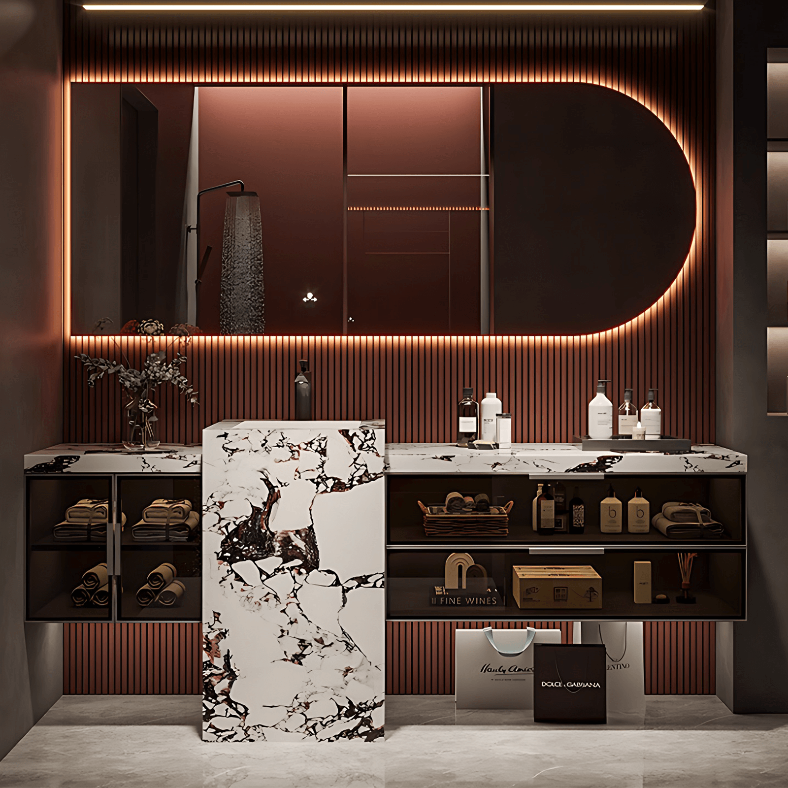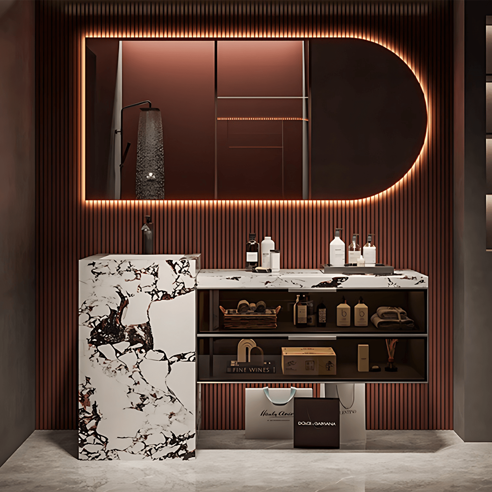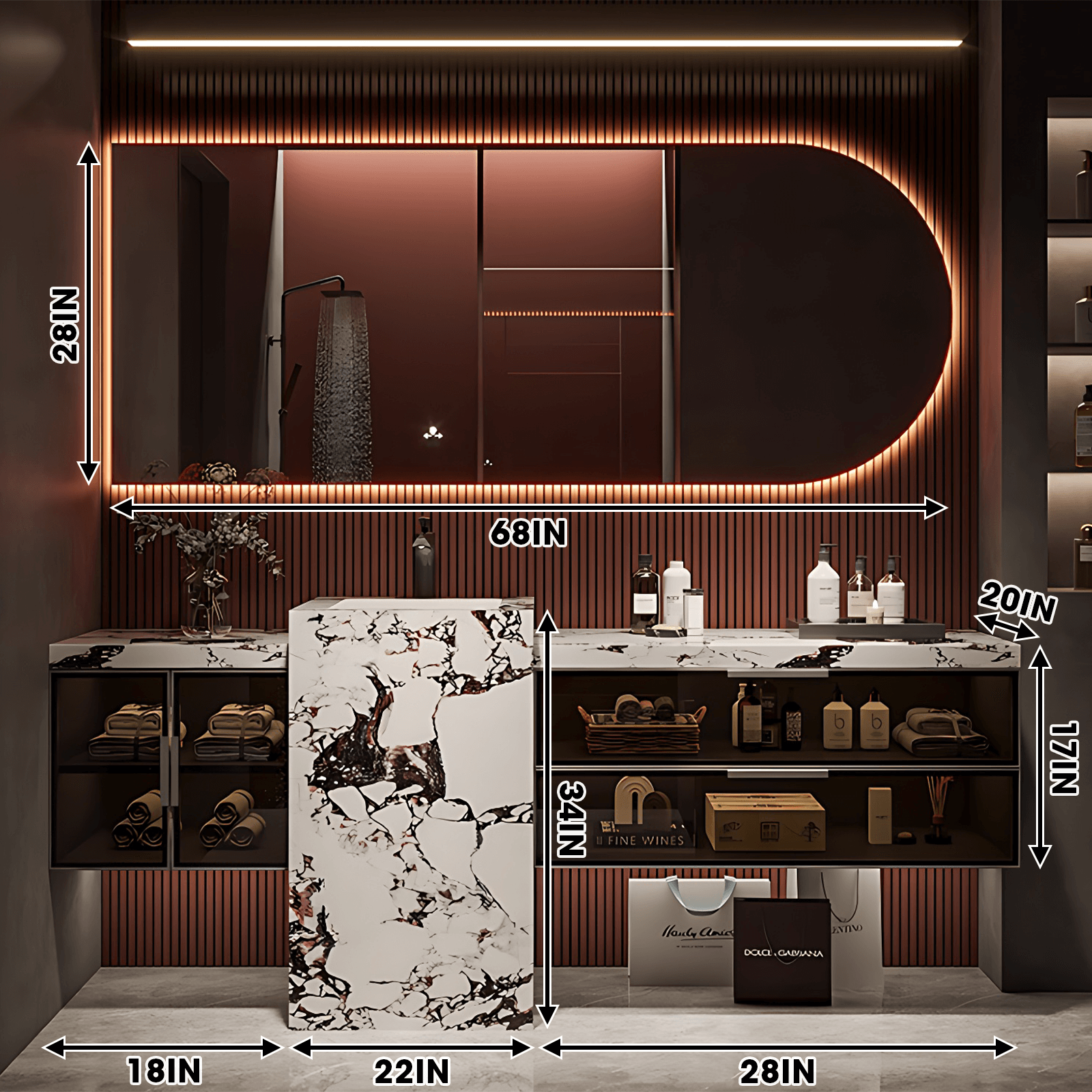 Introduce our carefully crafted modern single sink bathroom vanity set, equipped with an intelligent mirror, which embodies the modern elegance and practicality of bathroom space. Let's delve into the unique features of this dressing table: