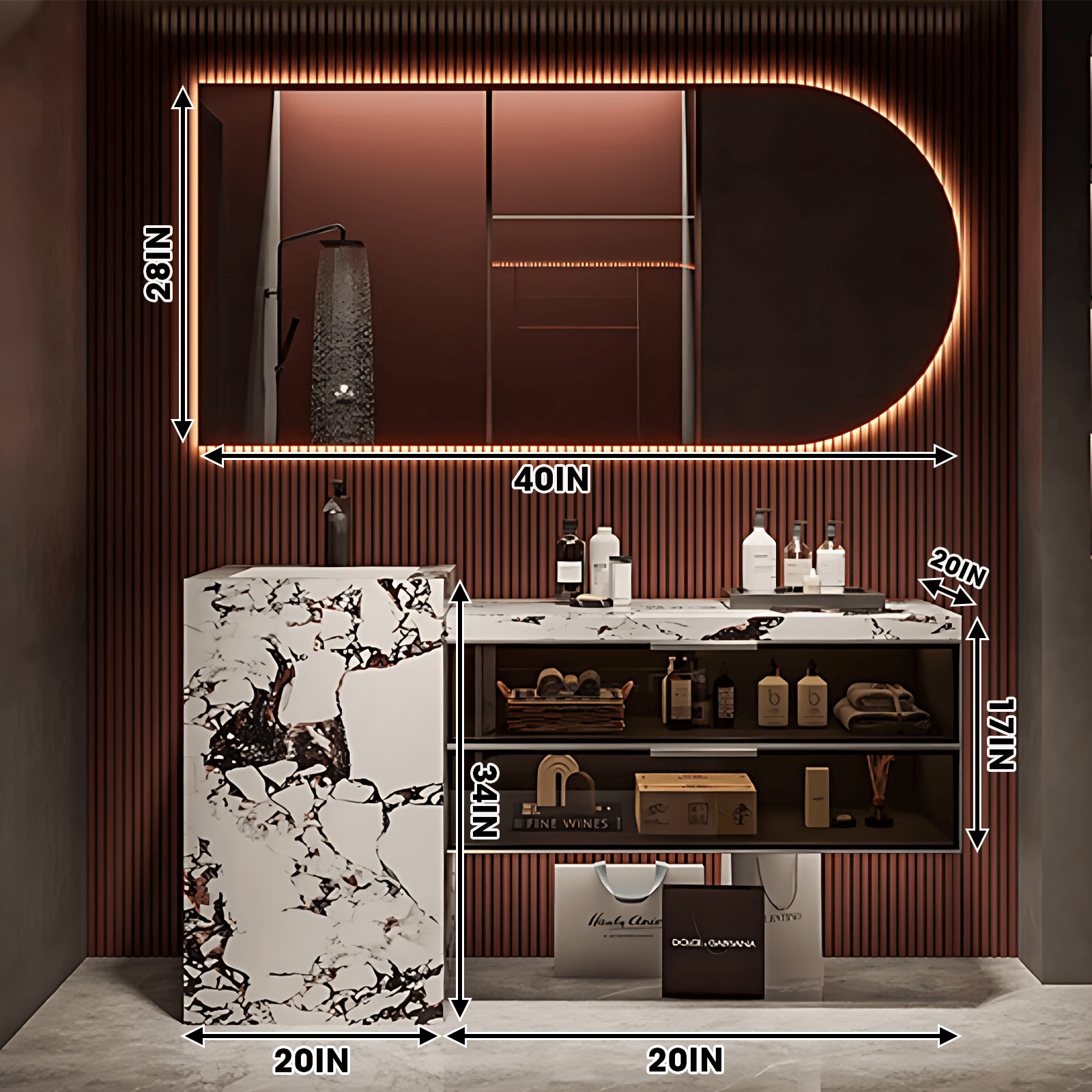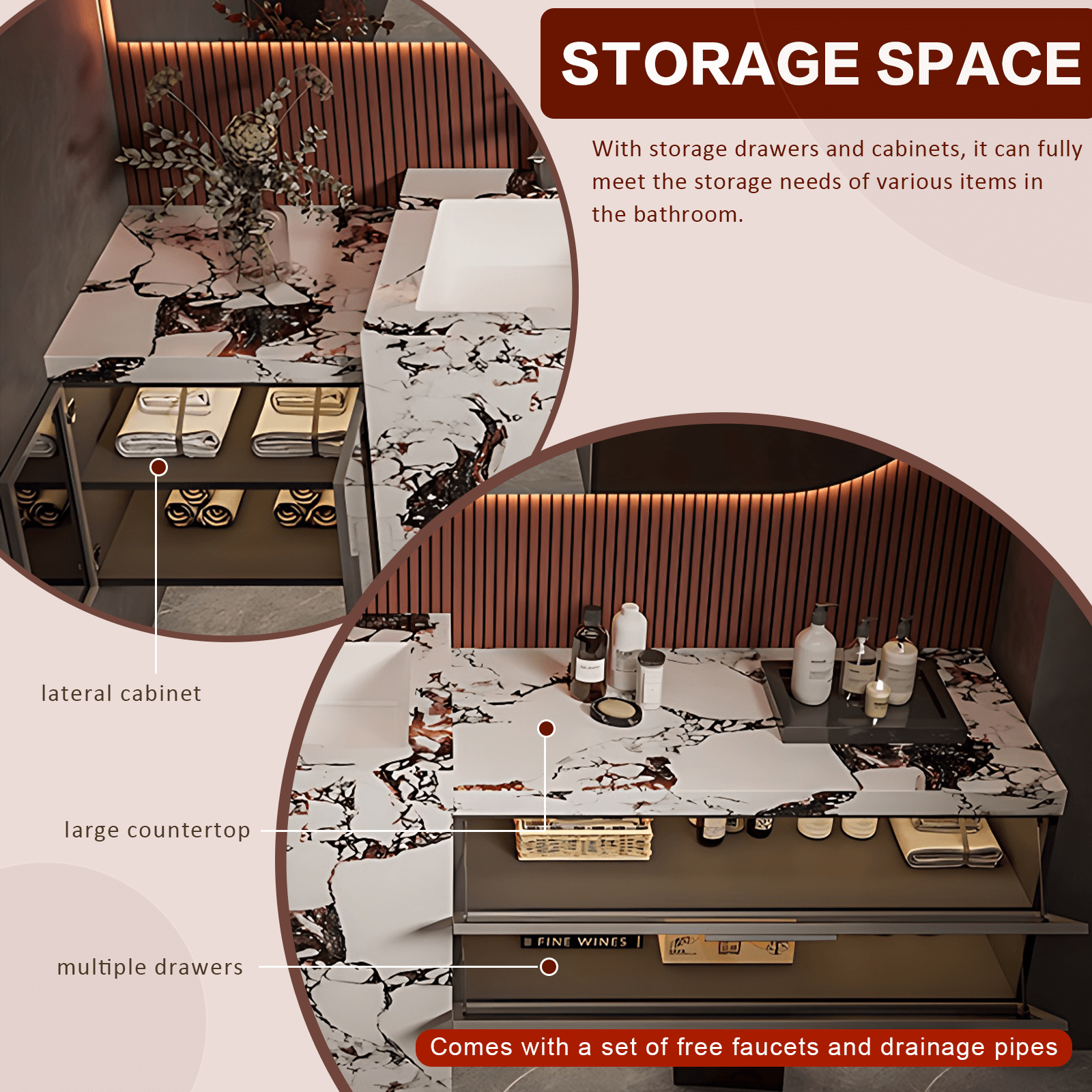Modern Design: Our stylish and modern design enhances the beauty of your bathroom. The countertop of this dressing table is made of high-quality stone material, emitting a delicate and fashionable atmosphere. The unique texture adds a unique charm to your bathroom, creating a focal point that seamlessly blends with any decor scheme.