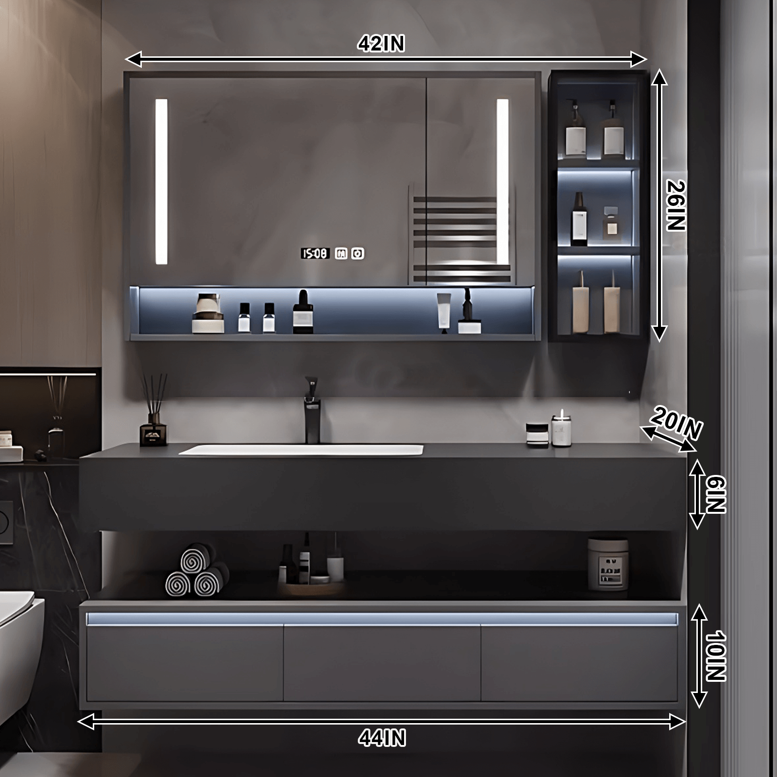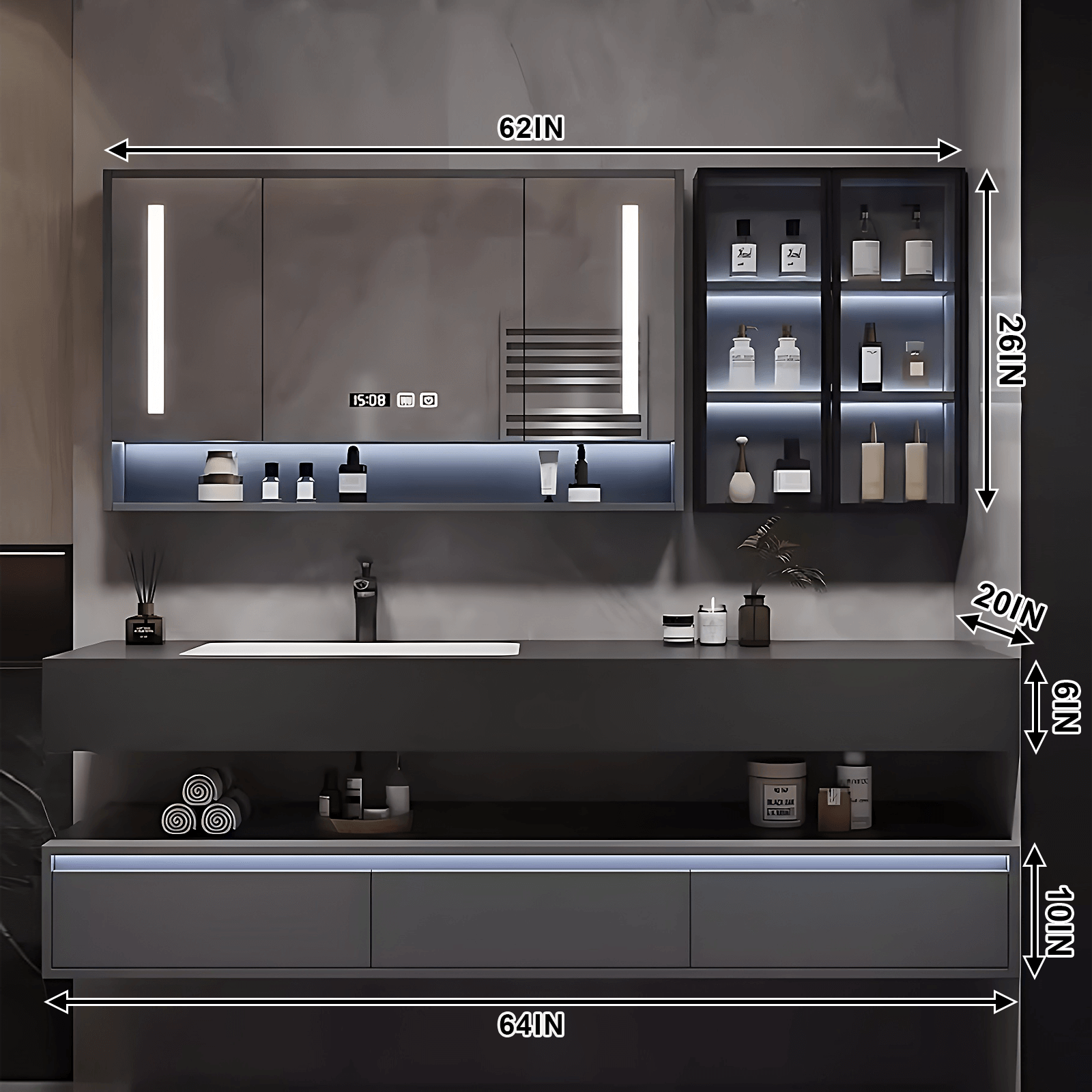 Efficient Organization: Our dressers feature a cleverly designed three-tier storage layout. The smart mirror seamlessly doubles as storage and features convenient side cubbies to seamlessly organize your daily bath products and neatly divide sections. An extra drawer under the sink provides plenty of space to store essentials, making it even more practical. Additionally, the hanging lower section provides easy-to-reach storage space for added convenience.
