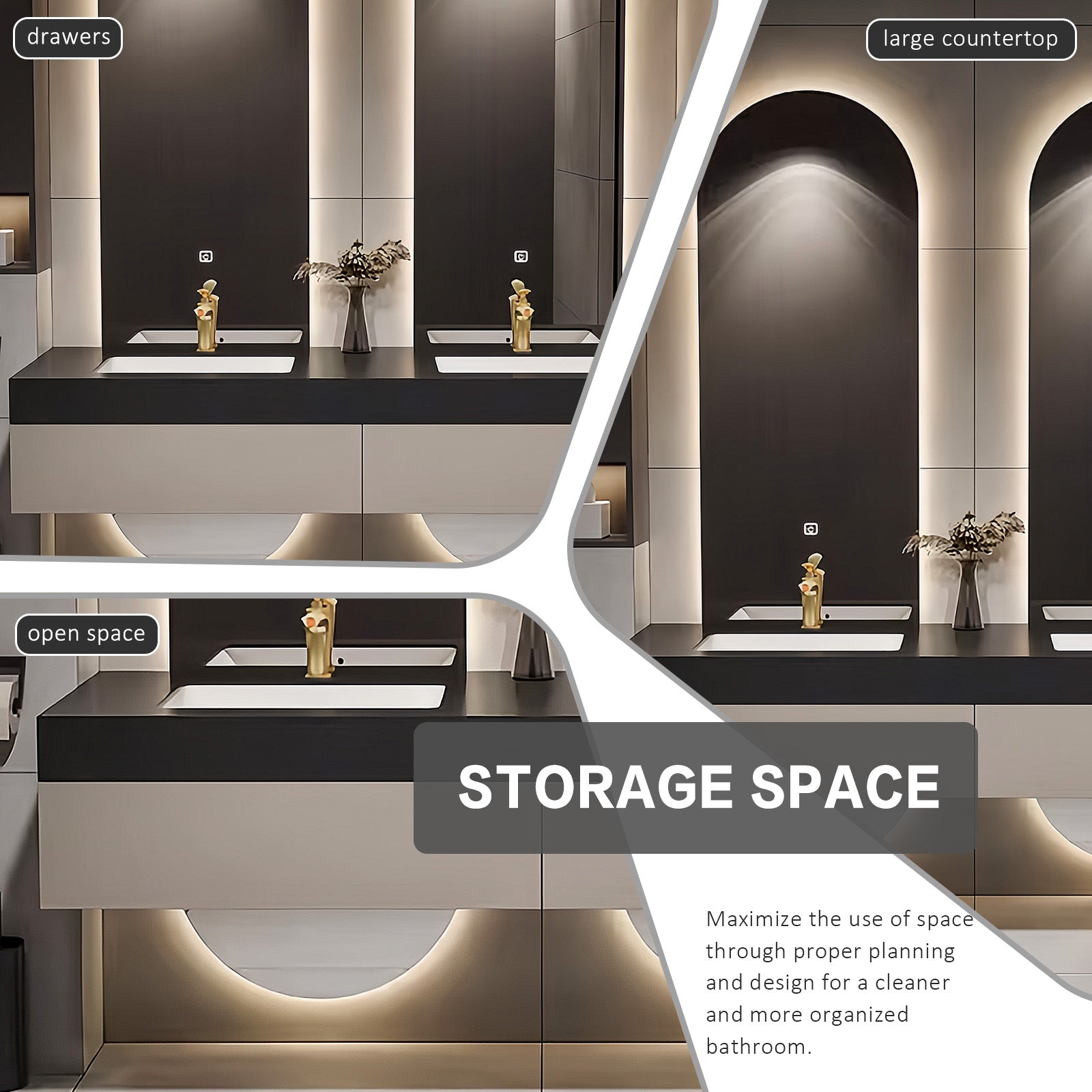 Spacious Storage: Our spacious drawers provide ample storage space for all your bathroom essentials, allowing you to experience the epitome of luxury. From toiletries to towels, our spacious drawers keep everything organized, turning your bathroom into an oasis of peace and convenience.