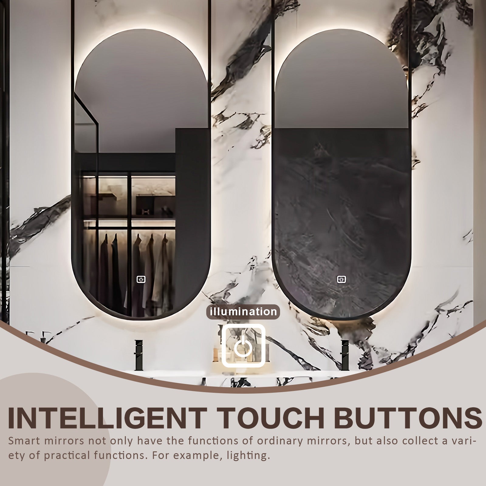 Irregular Lighting Mirror :Transform your beauty routine with our custom designed irregular mirrors, carefully crafted to enhance your experience. Enhanced by ambient lighting, these mirrors stand out from traditional mirrors, offering unparalleled clarity and unique design aesthetics. With user-friendly one-touch switches, they easily create a bright and spacious atmosphere, ensuring an unrivaled beauty experience.