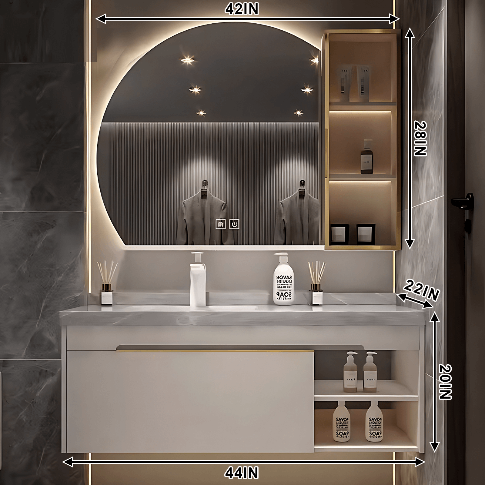 A unique Blend for A Unique Experience: Experience a truly unique fusion of design elements with our white minimalist bathroom vanity. Our vanities go beyond traditional aesthetics with hollow side storage and irregular smart mirrors to create a one-of-a-kind storage solution that sets your space apart. Our innovative designs take your bathroom to new heights of sophistication, with every detail crafted to captivate and inspire.