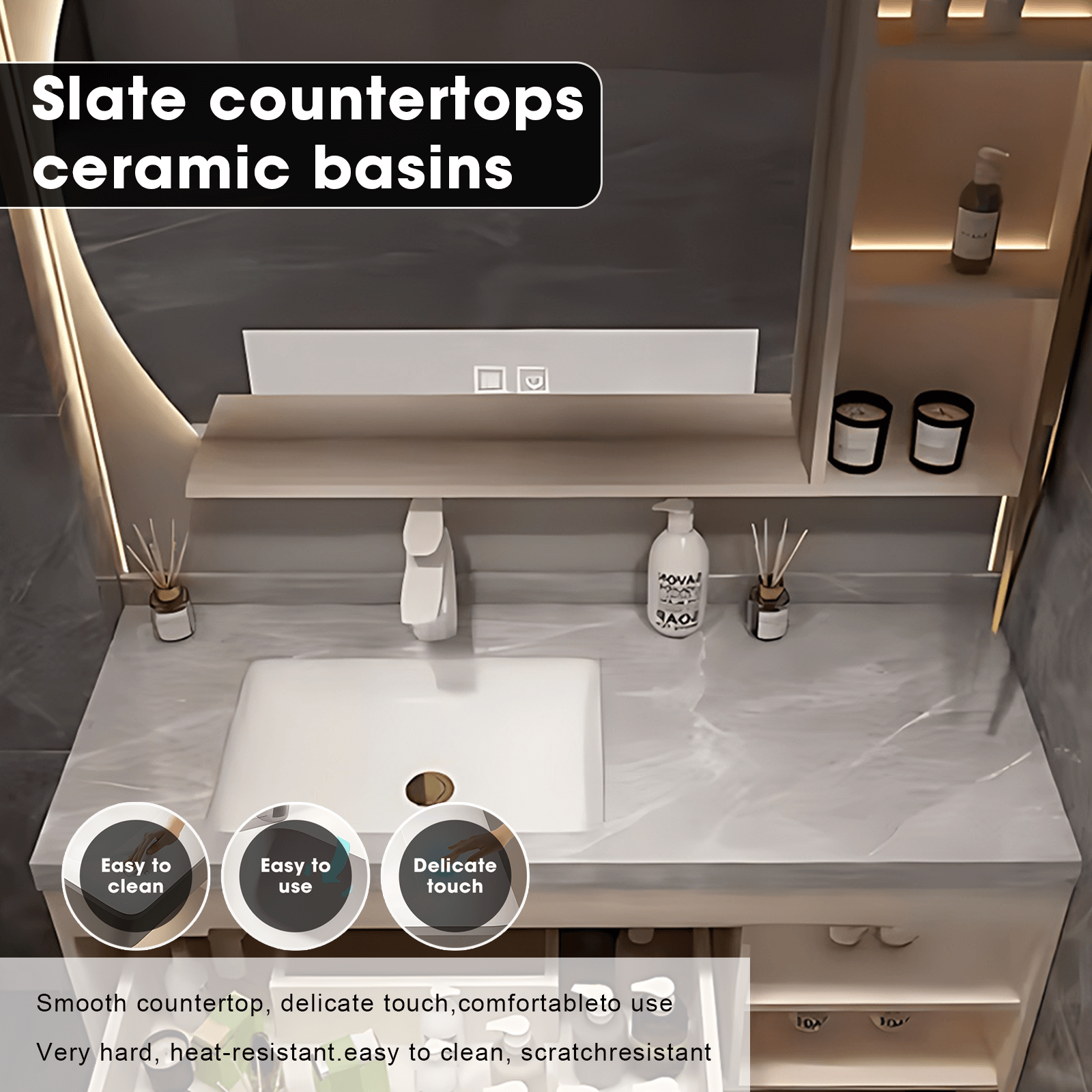 Plenty of Storage: Our bathroom vanities feature plenty of space to keep your essentials organized, maximizing your storage potential. The cleverly designed mirror cabinets in the upper half, combined with the cabinets and partition storage cabinets in the lower half, provide a wealth of storage options to meet your needs. The floating design at the base of the vanity makes cleaning easy and maintenance a breeze.
