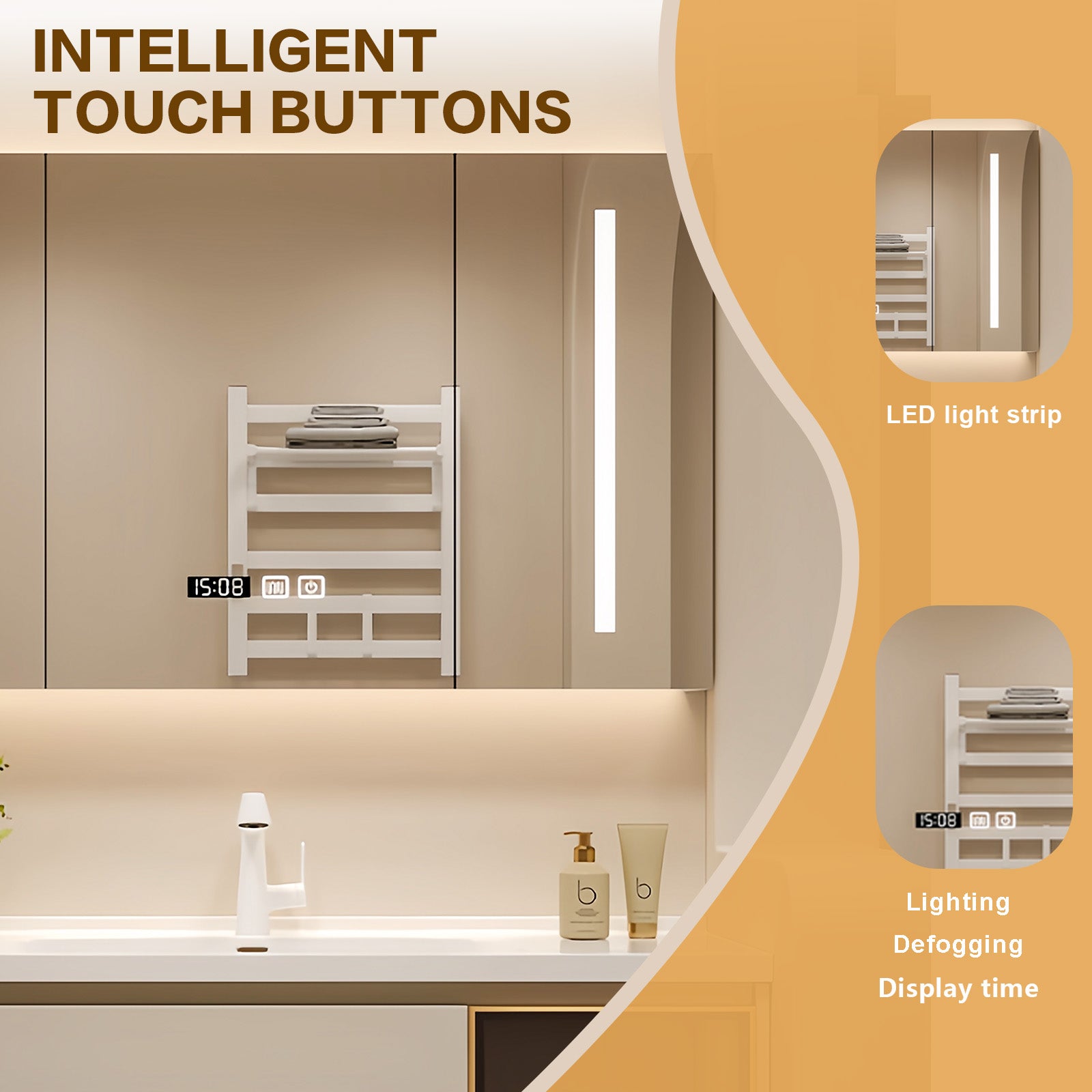 Get Your Glow with Smart Innovation: Simplify your morning routine with our advanced smart mirror. Experience the magic of instant defogging with just one touch, ensuring crystal clear reflections in seconds. Plus, enjoy the enhanced illumination provided by the built-in lighting, perfect for the perfect beauty routine. Our smart mirrors redefine convenience and sophistication, revolutionizing your daily habits.