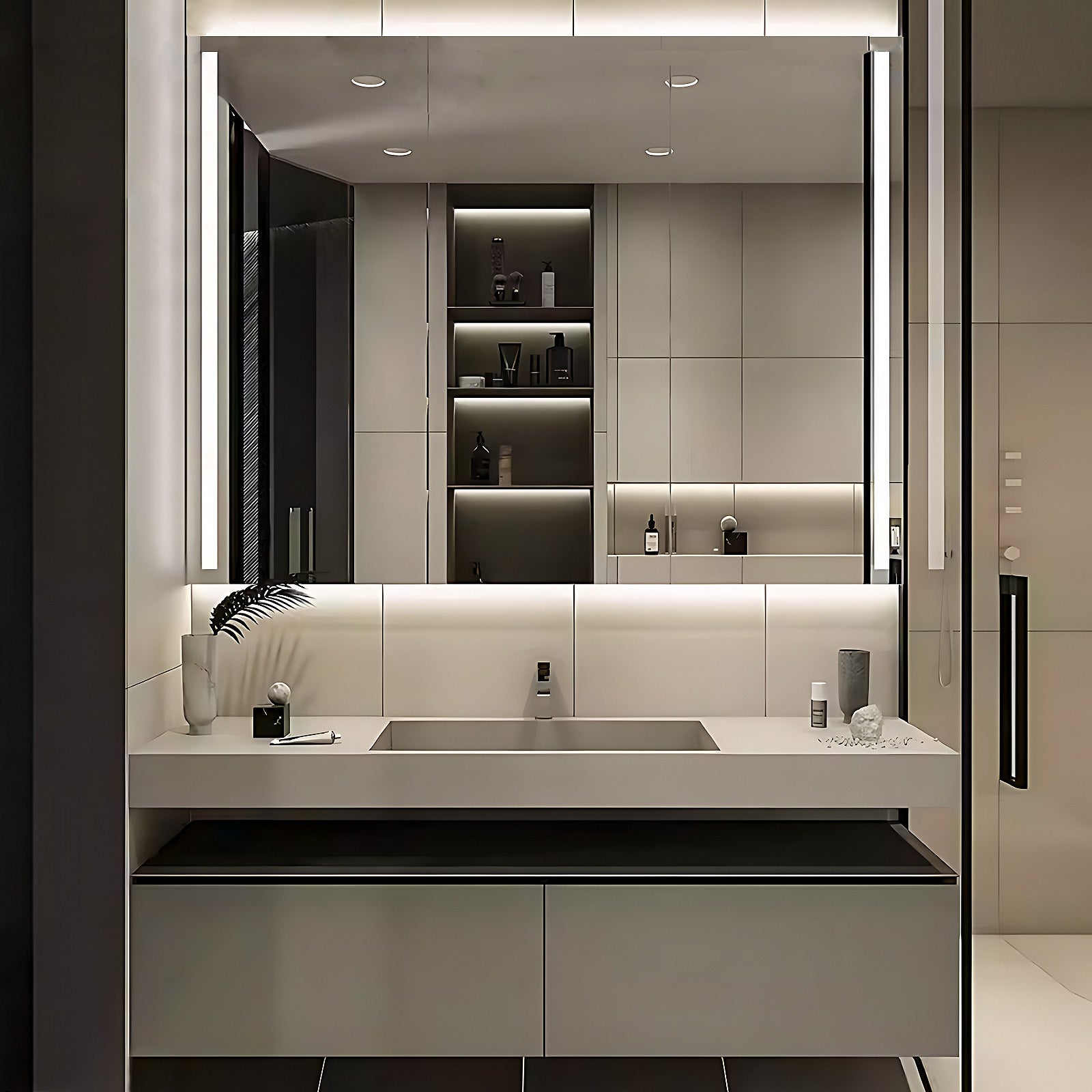 Premium Hardware: Experience the epitome of luxury and serenity with our high-quality hardware. Our bathroom cabinets feature high-quality soft-closing slides and hinges and are designed for safety, giving you peace of mind. The durable and smooth soft-closing mechanism ensures a quiet environment, adding a peaceful ambience to your bathroom. Every detail exudes luxury, elevating your space with high-end beauty and tranquility.