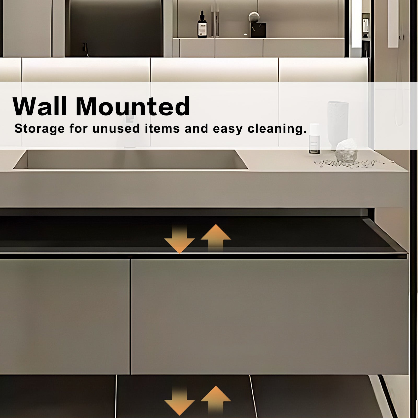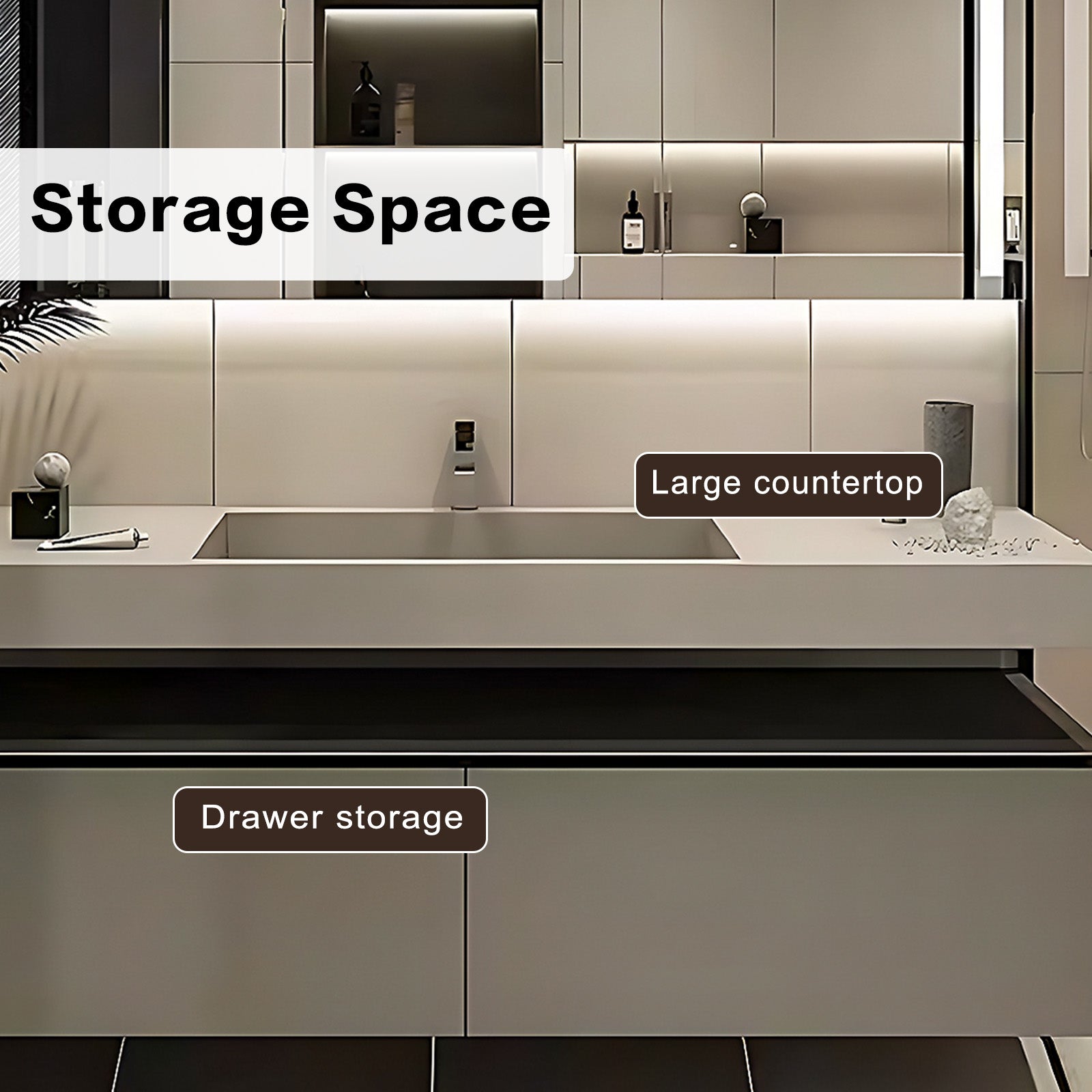 Efficient Under-Sink Storage: Maximize organization and convenience with our intelligently designed bathroom vanities. Open storage space under the sink is the perfect place to neatly store towels and other essentials, ensuring easy access during your daily life. Additionally, two concealed drawers provide discreet storage for personal items, enhancing privacy and functionality.