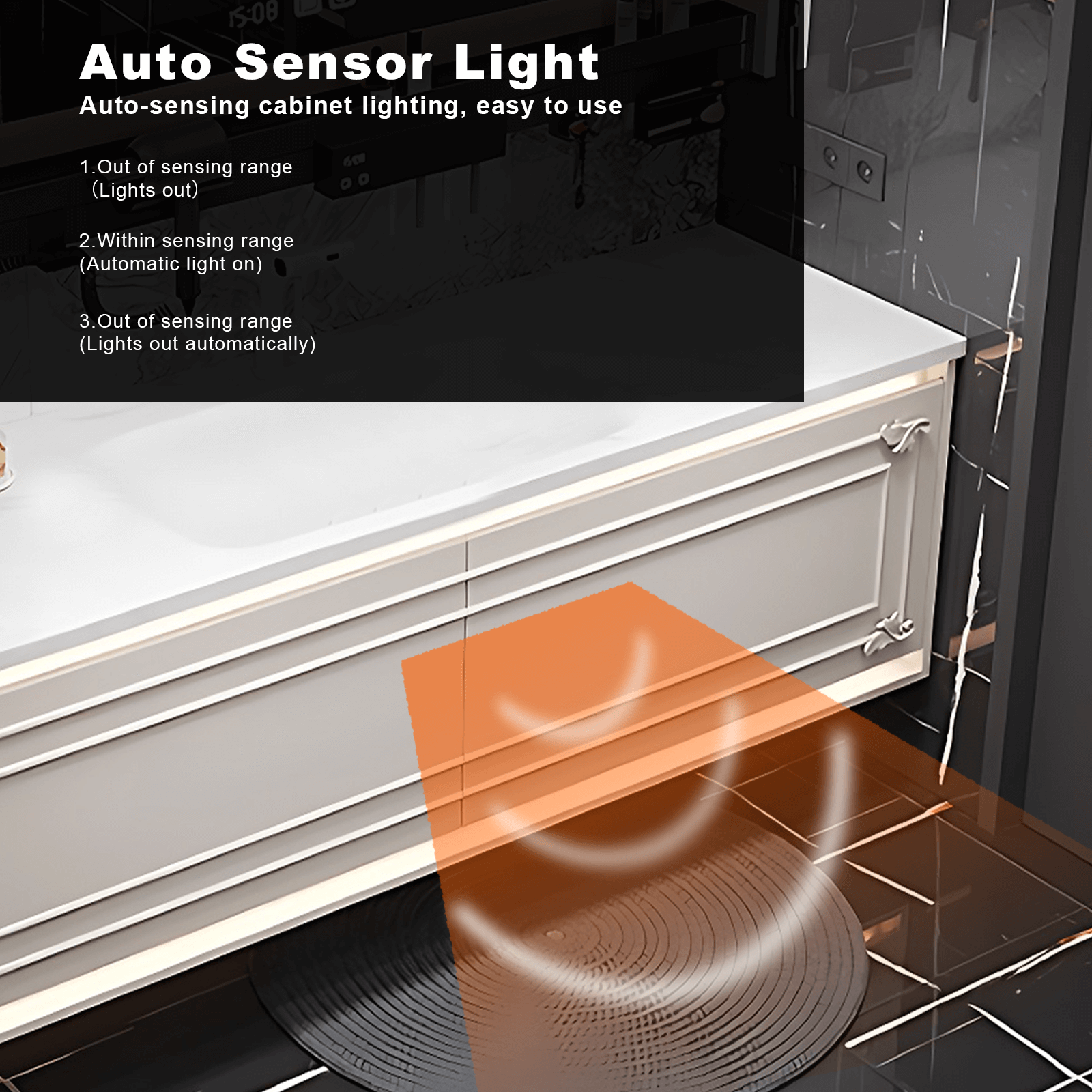 Human Body Induction Lighting System: Equipped with intelligent action lighting, allowing you to enter a convenient and elegant world. Experience the epitome of smart design, with motion sensors that automatically light up as you approach and gracefully dim as you leave. Our motion-activated lighting not only adds modern sophistication but also enhances functionality, making your daily rituals simple and convenient, completely transforming your bathroom experience.