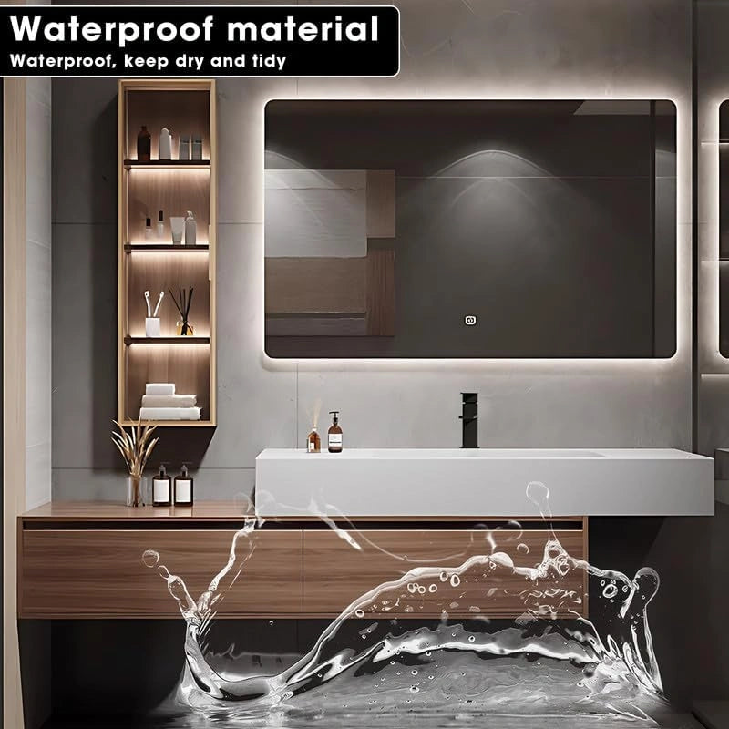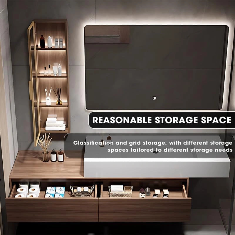 Ample Storage Space: The bathroom cabinet is equipped with sufficient storage space. The large drawers are used to store toiletries and daily items, and the spacious compartments allow items to be placed in order. Combined with the transparent mirror side cabinet, the partition design is clear, and there are multiple storage options, making it easier to take and put away items.