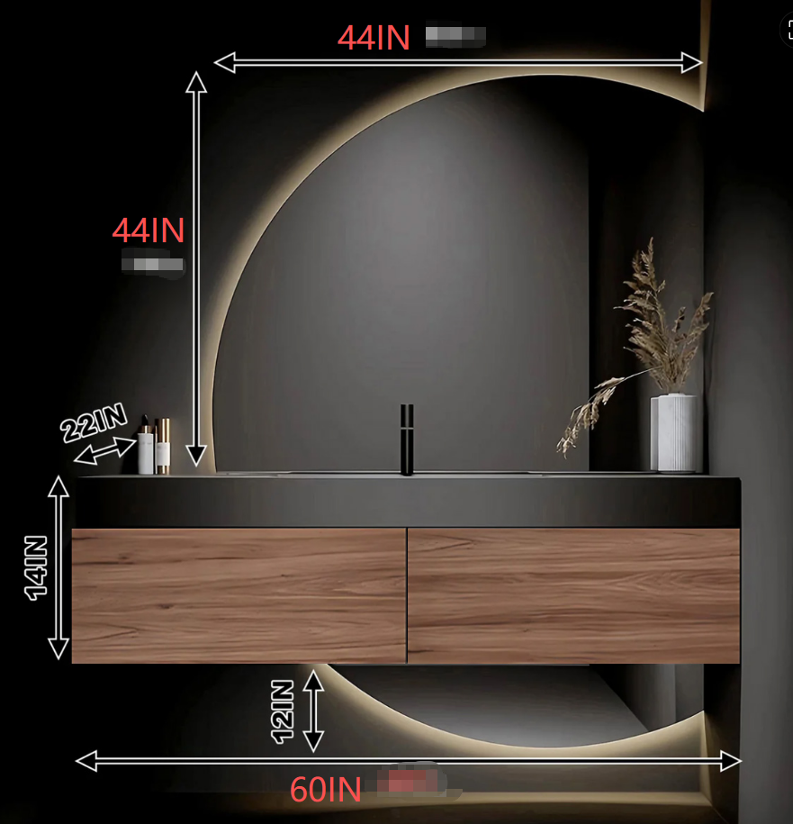Unique Design Aesthetics: Our bathroom cabinets are mainly gray in color, with unique irregular round mirrors, exuding a refined atmosphere. Inspired by the latest designer creations, we embrace simplicity and artistry in our approach. Each cabinet is crafted by our expert designers and craftsmen through a meticulous, iterative creative process, perfectly combining practicality with artistry.