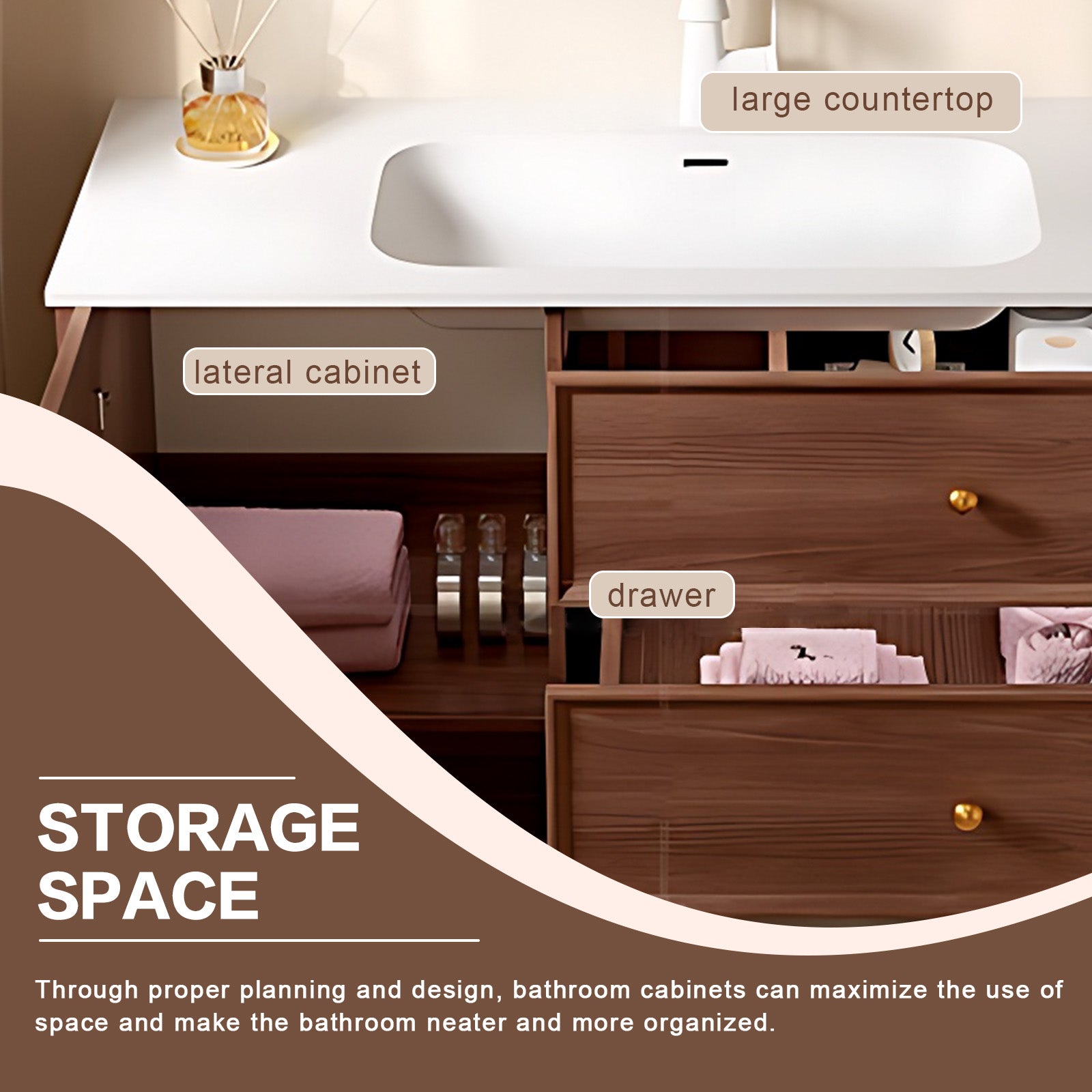SEAMLESS INTEGRATED SINK: Our bathroom vanity features a flawlessly integrated basin, offering a smooth and sophisticated surface that is easy to clean and free from hidden corners. The wide countertop also has a large area for makeup, brushes and power puff.
