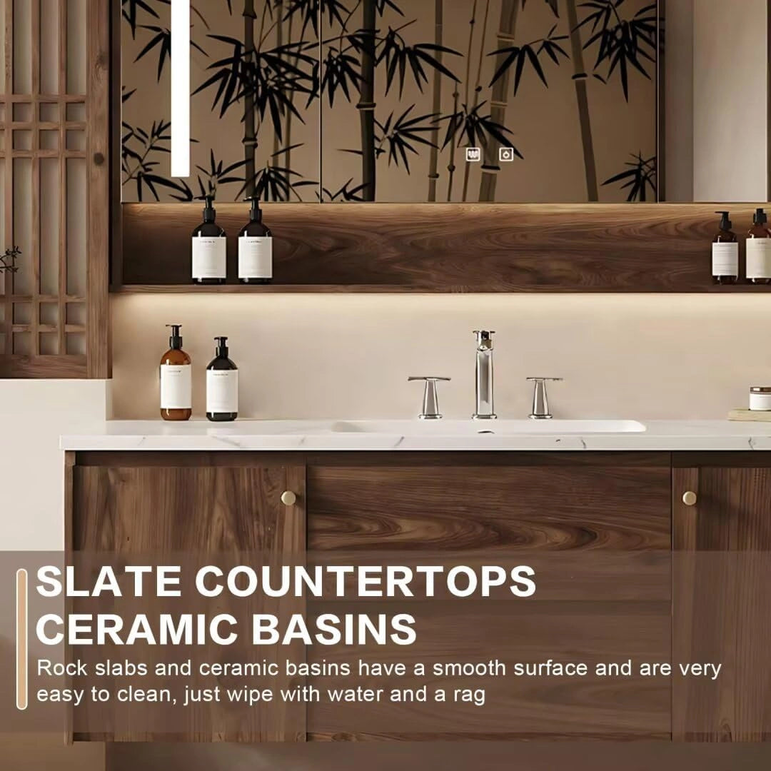 Selected Materials: The cabinet is made of wear-resistant solid wood with a refined, silky-smooth grain finish. The sturdy slate countertop adds warmth, comfort, and beauty, bringing an elegant, rustic touch to your bathroom.