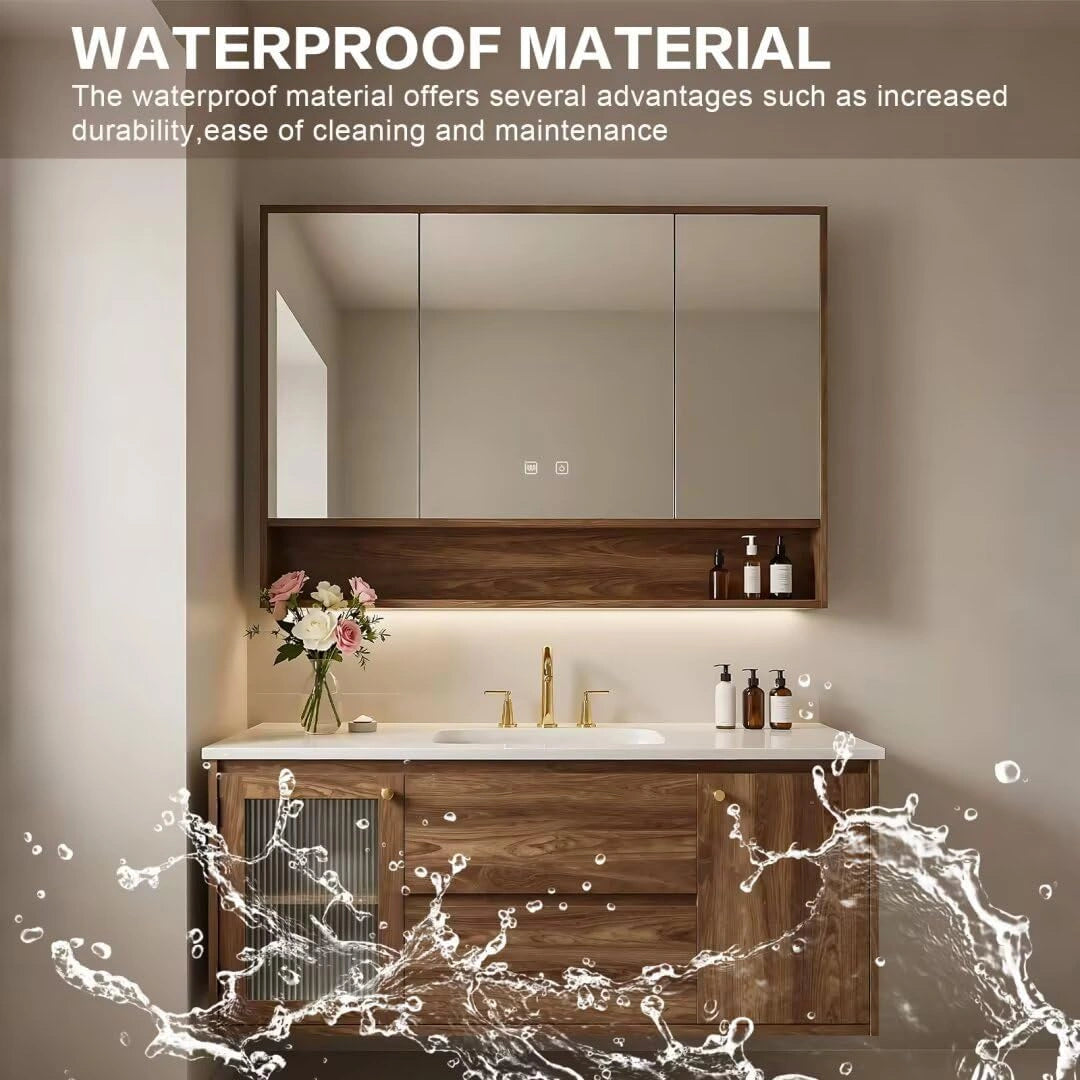 Smart Defogging Mirror Cabinet: Built-in soft lighting provides ideal illumination for grooming. The smart defogging function keeps the mirror clear and fog-free, making daily use more convenient.