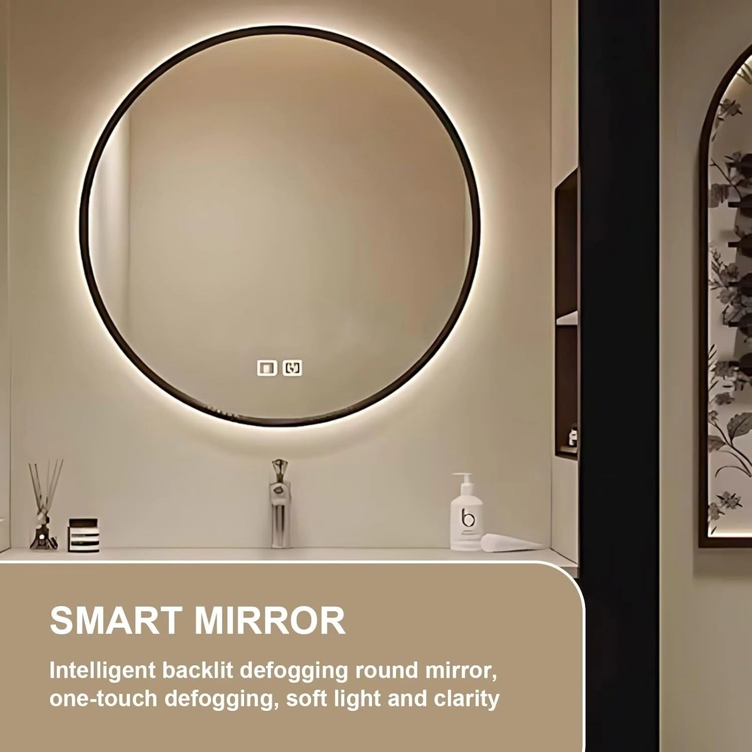 Circular LED Intelligent Anti-fog Mirror: The anti-fog function eliminates the obstruction caused by water vapor, allowing the view to be clear without the need for wiping. The built-in LED lights provide uniform and bright illumination, enhancing the visibility for grooming and skincare.