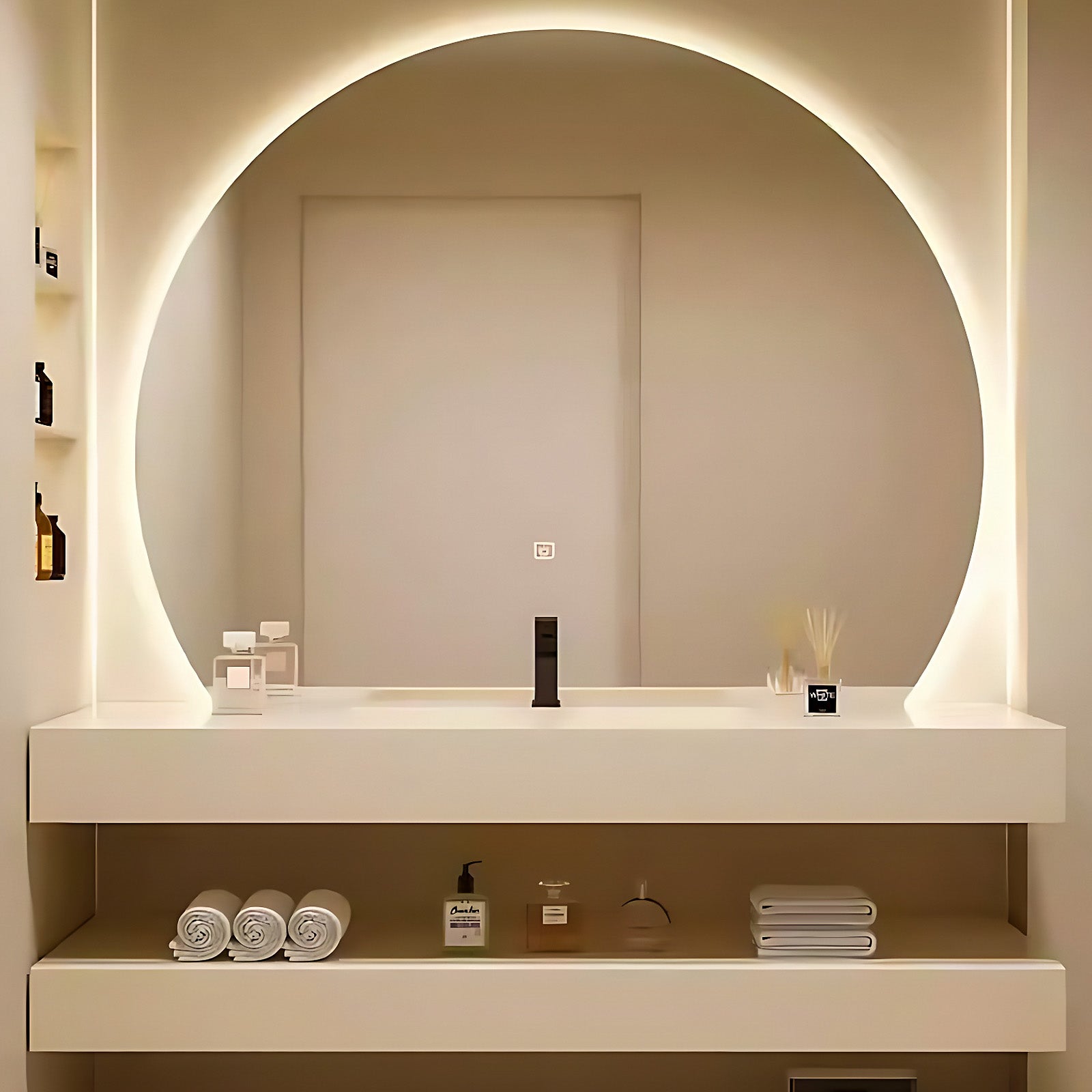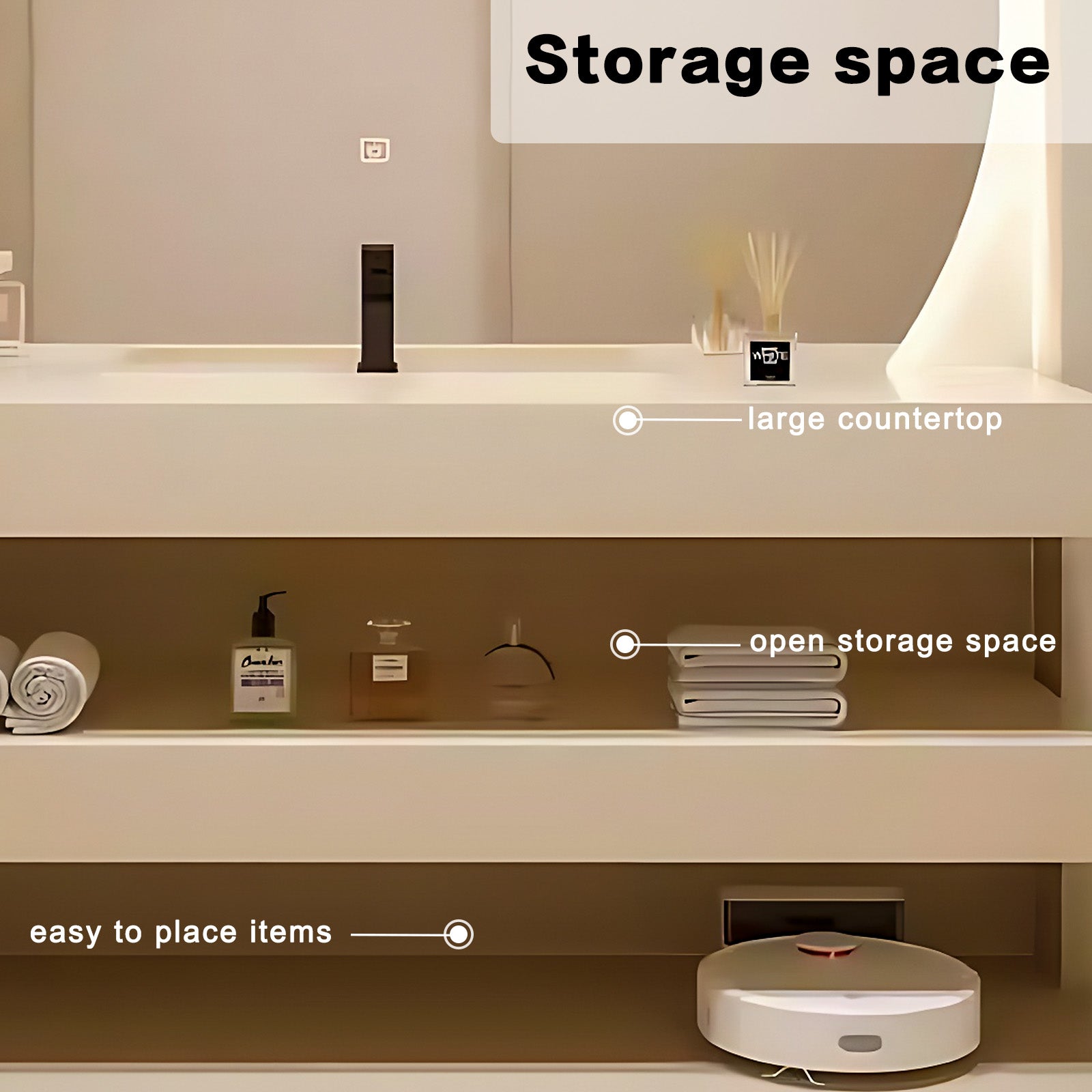 Simple and Elegant Design: Our thoughtfully designed cabinets incorporate off-white tones to create a timeless color scheme that enhances the beauty of your bathroom. Complemented by slate countertops with a unique marble texture, our cabinets exude sophistication and style. Spacious irregular round mirrors enhance visual appeal and ensure seamless harmony of design elements.