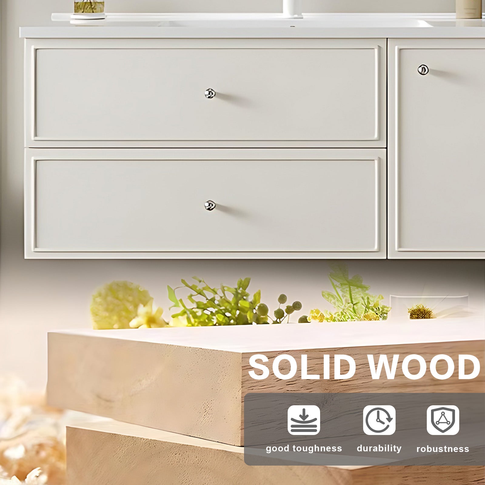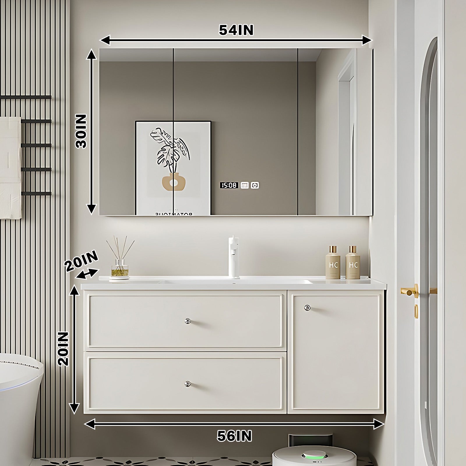 Premium Ceramic Wash Basin: Indulge in luxury with the premium ceramic wash basin that complements this Amazon vanity. The suspended integrated design exudes sophistication, while the milk-white cabinet doors add a touch of elegance. The high-quality ceramic material not only enhances the visual appeal of the vanity but also ensures long-lasting durability and easy maintenance. Keep your bathroom looking pristine and enjoy a seamless washing experience with this exquisite ceramic basin.