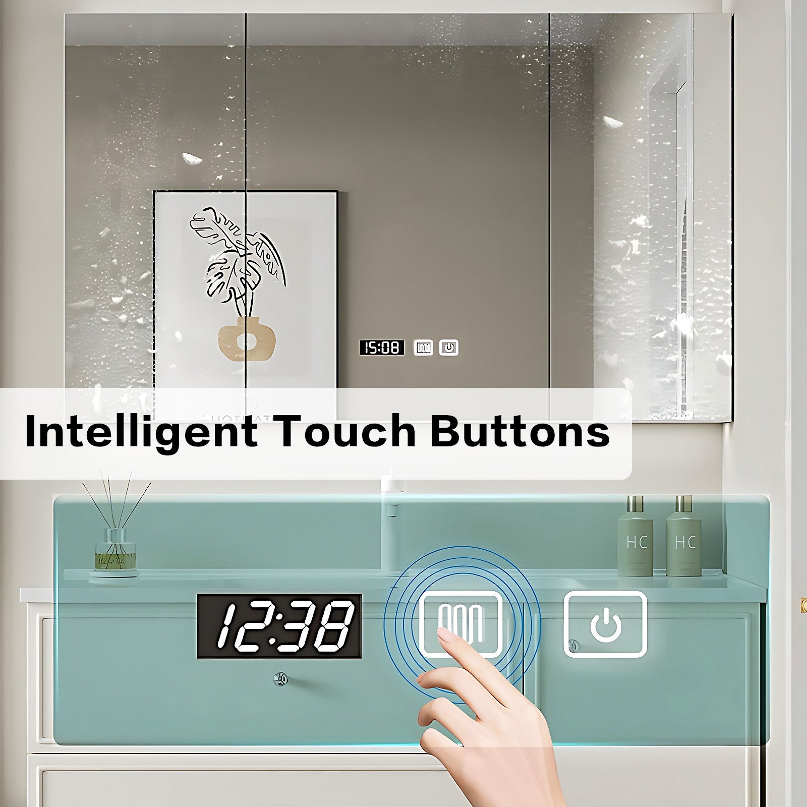 Smart Defogging Mirror Cabinet: Experience the convenience and innovation of a smart defogging mirror cabinet with this Amazon vanity. Say goodbye to the frustration of dealing with foggy mirrors after a hot shower. The intelligent defogging technology ensures that the mirror remains crystal clear, allowing you to effortlessly go about your grooming routine without any hindrances. Whether you're applying makeup or shaving, the clear mirror surface provides optimal visibility, making your daily rituals a breeze.