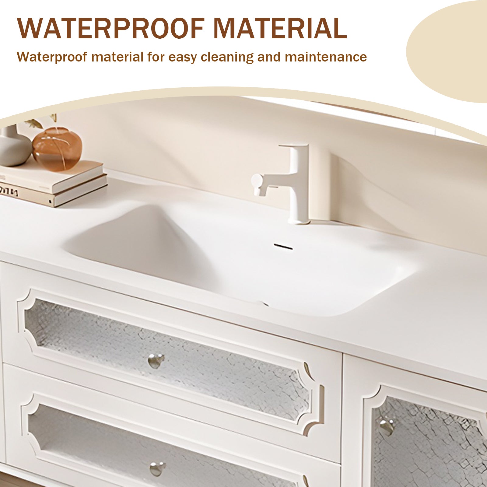 High-Quality Integrated Artificial Basin Design: The integrated artificial basin uses high-quality materials, and the design achieves seamless splicing, avoiding the gaps that may appear in traditional basins, making the overall smoother and more visually modern. The finely processed surface is smooth and non-porous, and oil stains and stains are difficult to adhere to. It is easy and convenient to clean, ensuring the beauty and practicality after long-term use.