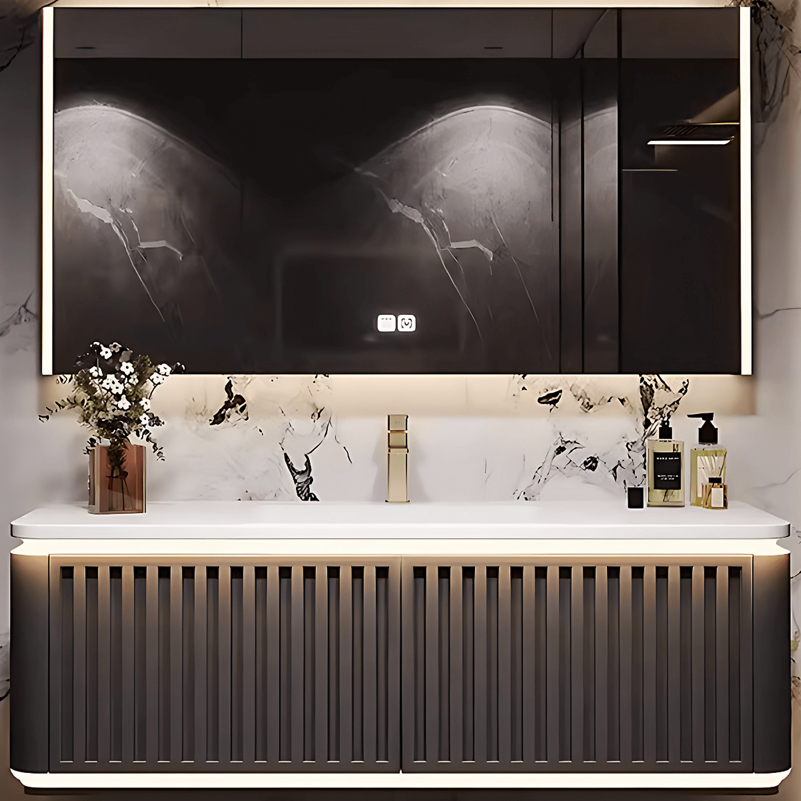 Intelligent Defogger Mirror Cabinet: Say goodbye to foggy mirrors with our intelligent defogger mirror cabinet. With a convenient one-click defogger function, you can enjoy clear reflections even in steamy conditions. The spacious cabinet offers ample storage for all your bathroom essentials, keeping them organized and within easy reach.