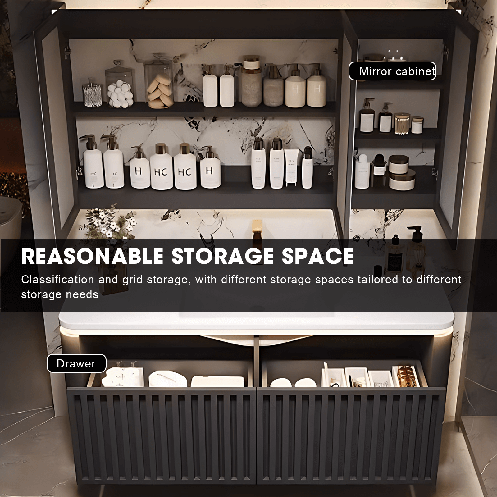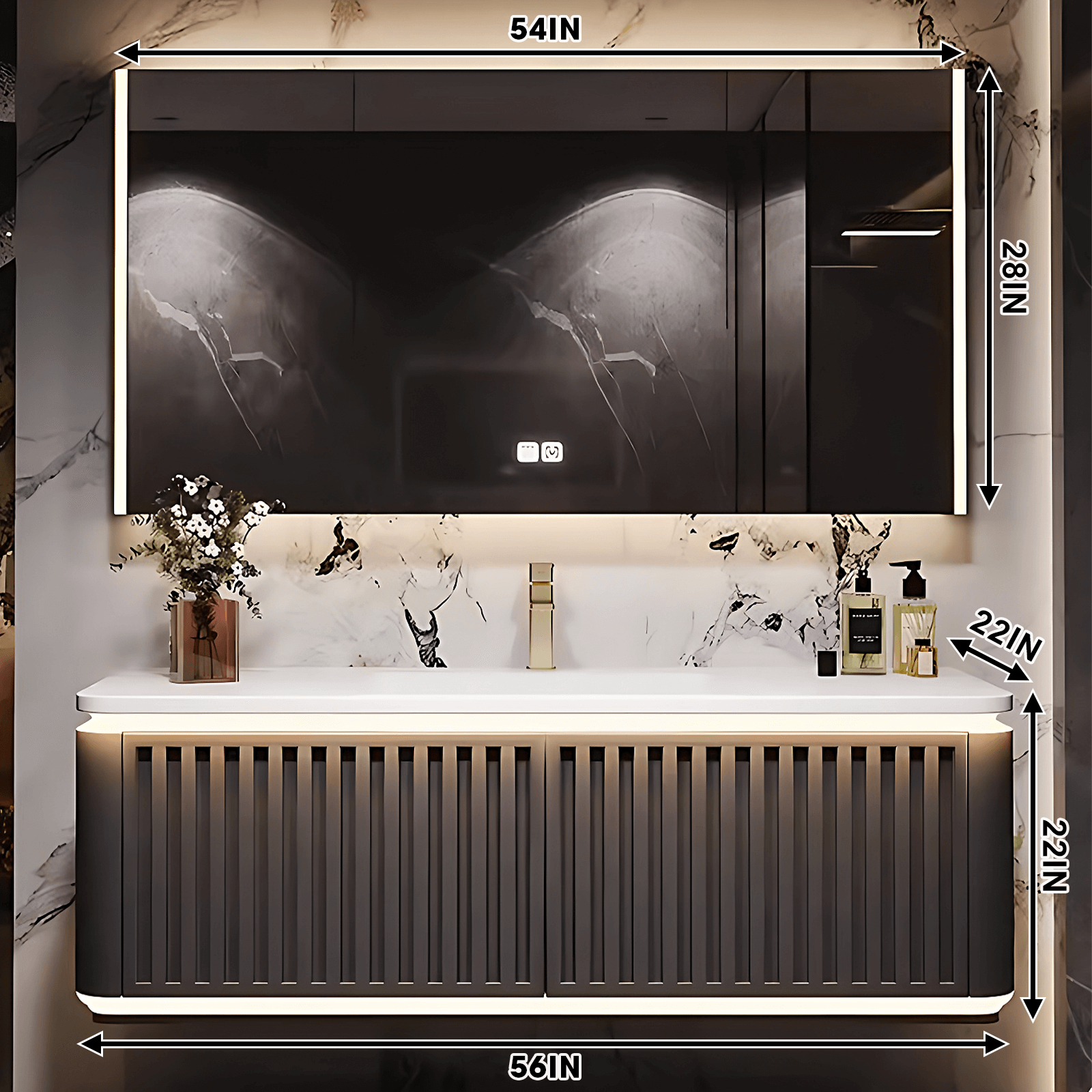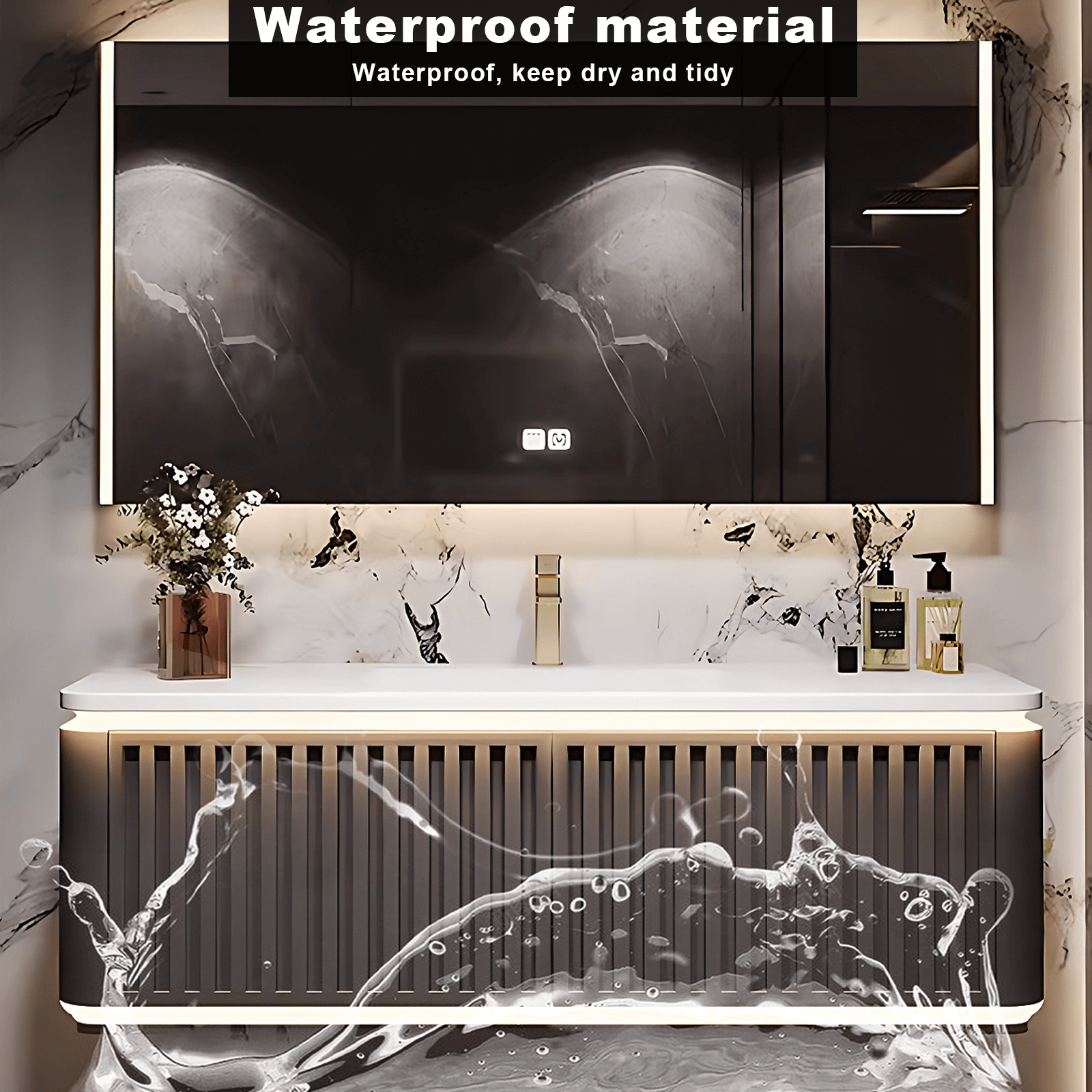 Wall-mounted Design: Our vanity's wall-mounted design not only saves valuable floor space but also simplifies cleaning. With no legs to work around, keeping your bathroom tidy has never been easier.