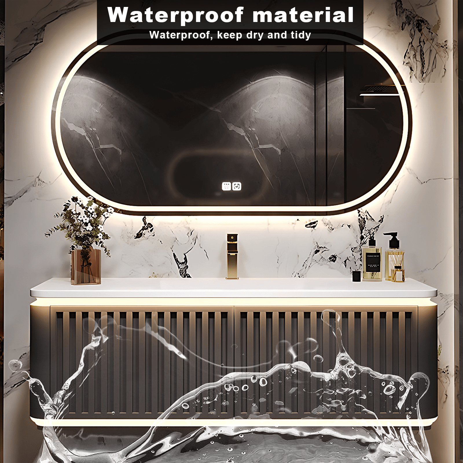 Wall-Mounted Design: Maximize space in your bathroom while enjoying effortless cleaning with our sleek wall-mounted design. By freeing up floor space, this vanity set creates an airy ambiance, making your bathroom feel more spacious and inviting. Cleaning around and beneath the vanity becomes a breeze, ensuring a hygienic environment with minimal effort.