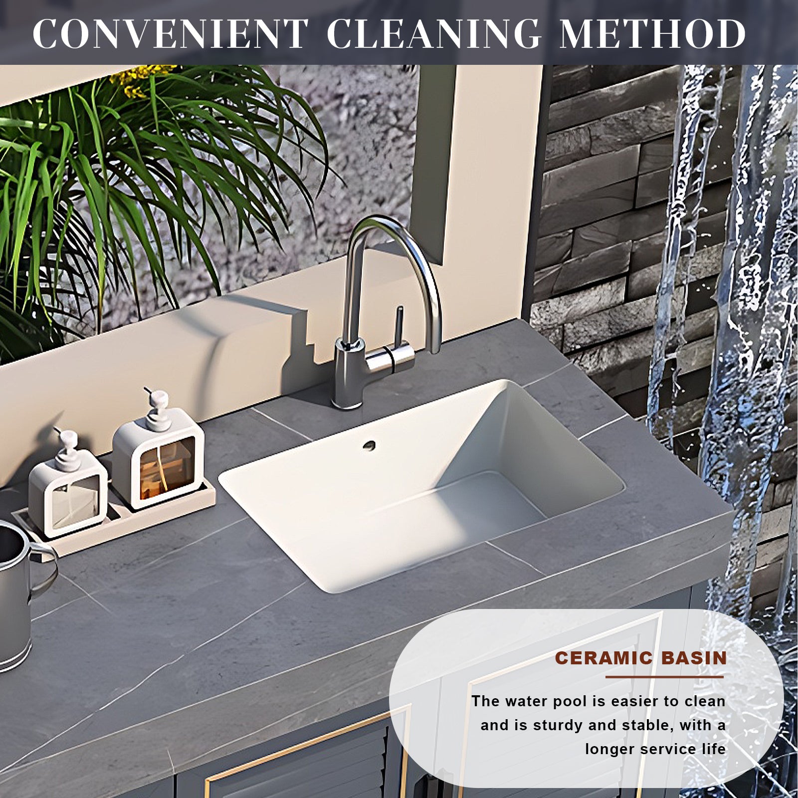 Modern Design: Our cabinet doors elegantly blend luxury with contemporary design, featuring a sleek striped pattern with unmatched simplicity. To complement its modern aesthetic, the frames of the cabinets and drawers are adorned with a hint of gold