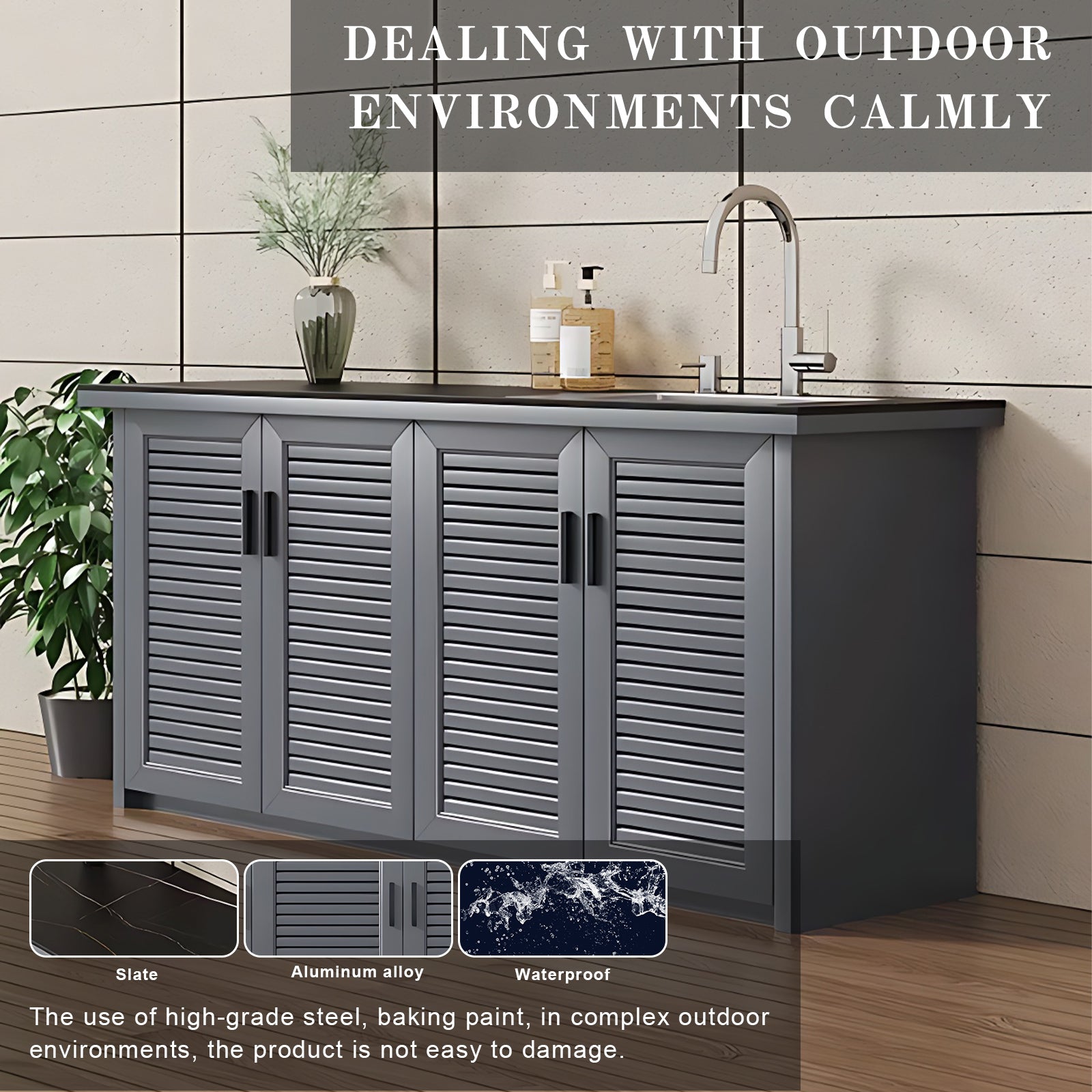 Premium Aluminum Alloy Panel Sink Cabinet: Our exquisite sink cabinet is mainly made of aluminum alloy, which is the preferred premium material for outdoor furniture. This cabinet has a stylish and elegant design. Its solid structure ensures resistance to extreme temperatures, extending its lifespan and making it a long-term investment. The high-grade aluminum alloy panel has excellent wear and scratch resistance, ensuring that it maintains its beauty even with frequent use.
