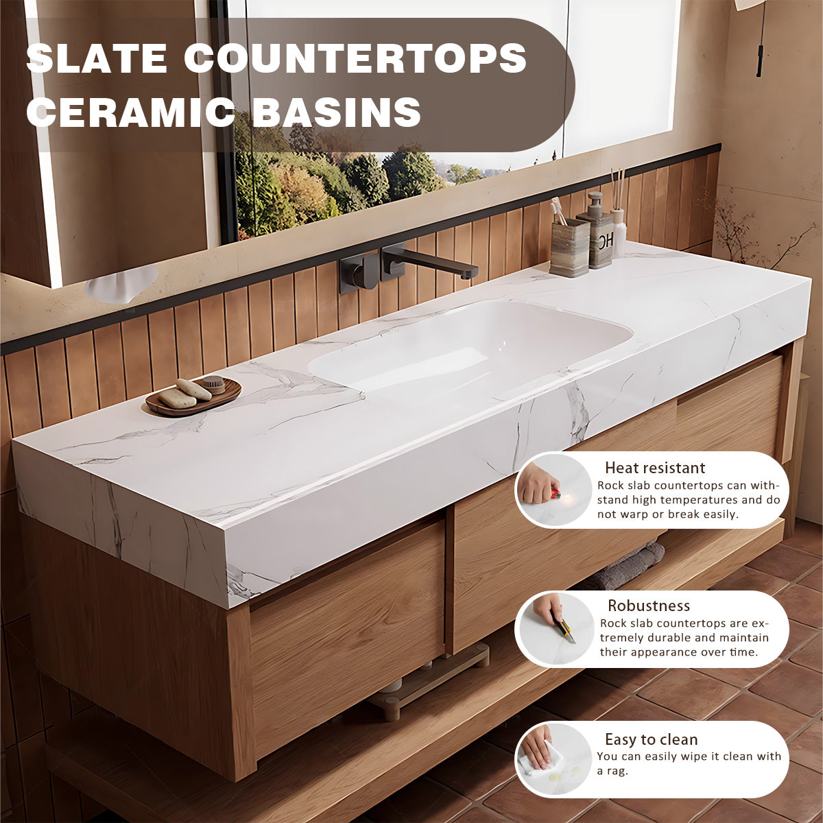 Basin Functionality: Streamline your daily routine with the functional basin design. This feature not only provides a sleek and modern solution for your daily washing and grooming needs but also maximizes countertop space.