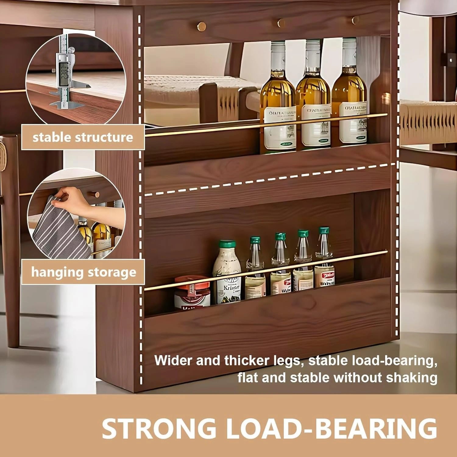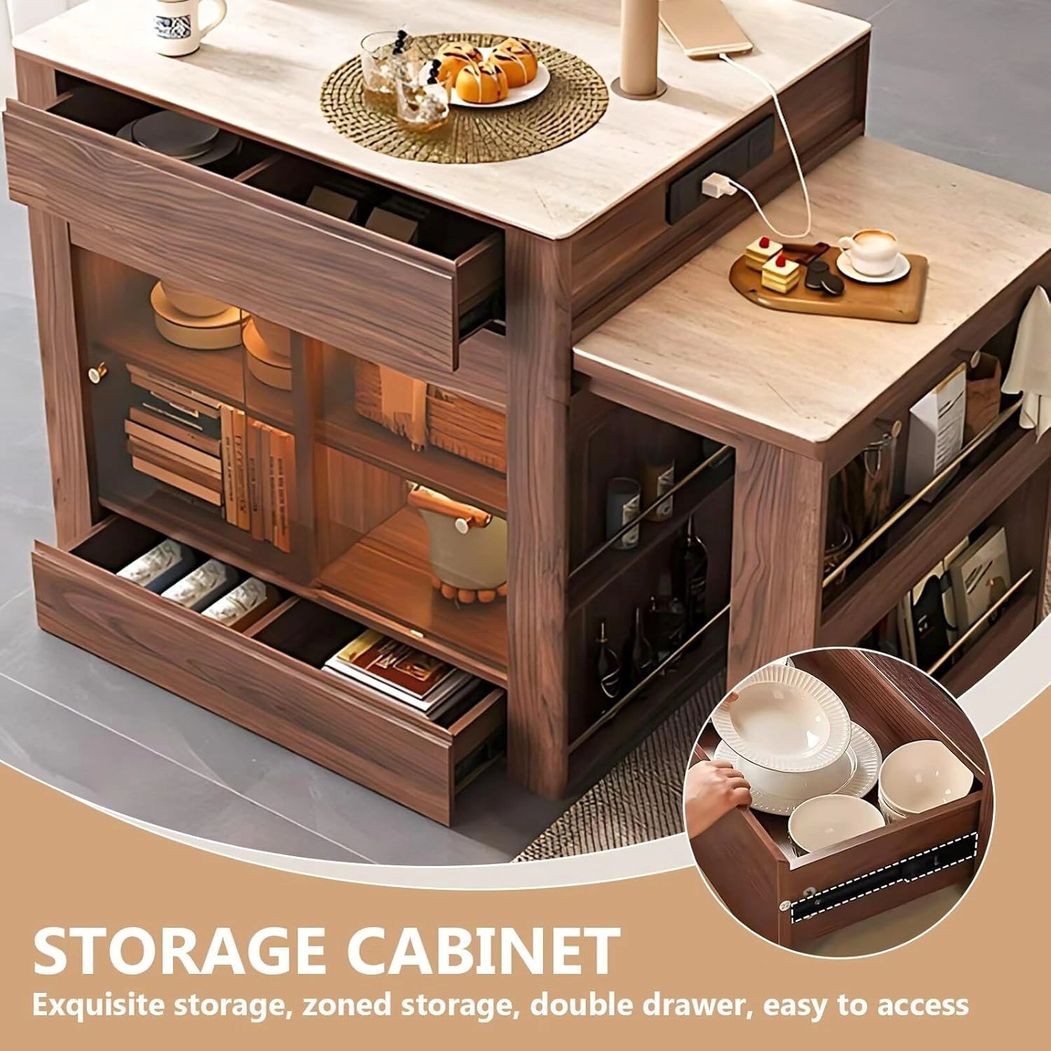 Extendable All-in-One Island & Dining Table: Boasting a seamless island-table integration, this piece lets you modify the table size according to your needs. It's a smart space-saver for daily use, and can be effortlessly extended to comfortably accommodate large dinner parties with ease.