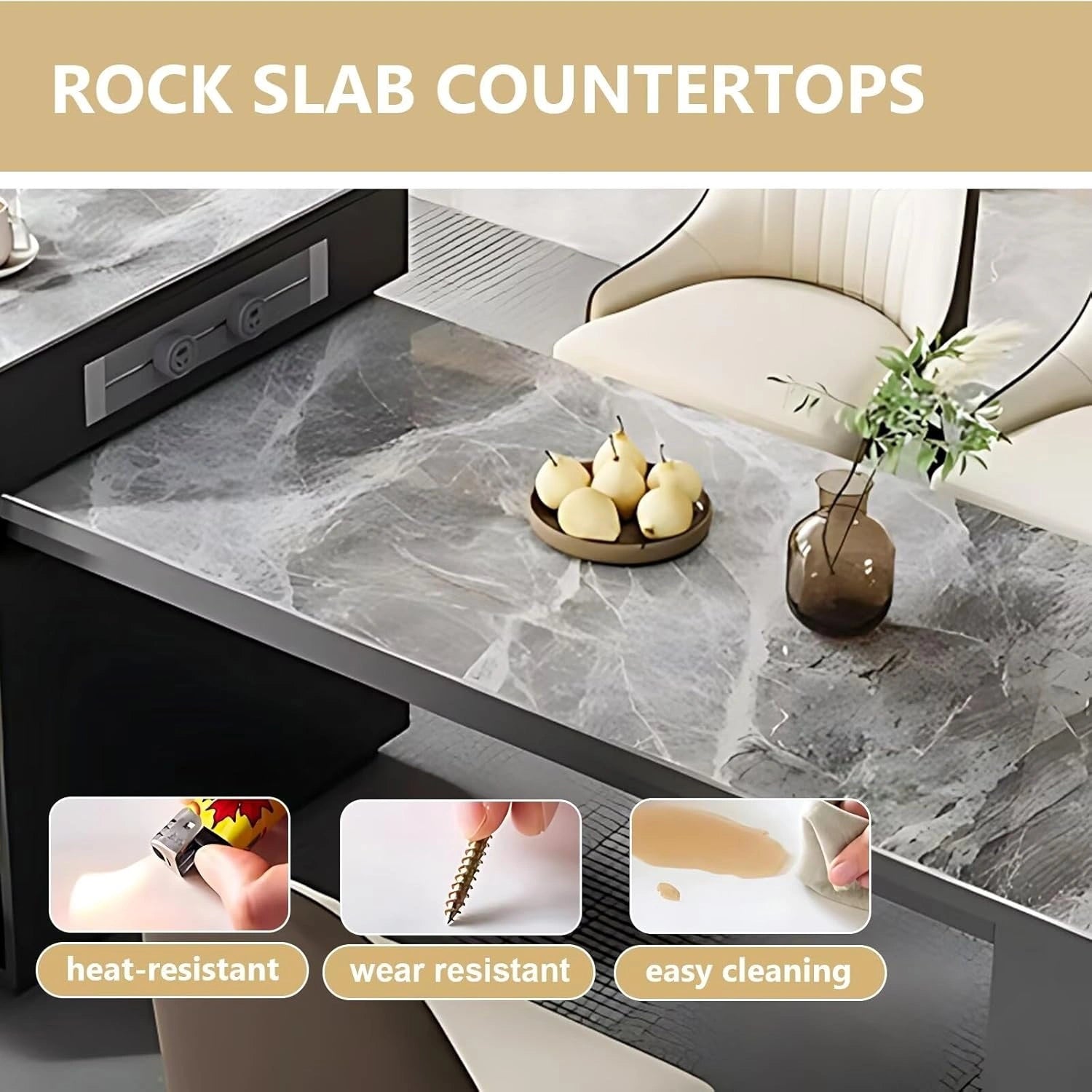 Beautiful & Durable Premium Materials: The slate tabletop is exceptionally sturdy, visually striking, and effortless to clean. The transparent, glossy glass cabinet doors elevate the overall refinement of the piece, while the solid wood frame delivers reliable load-bearing capacity.