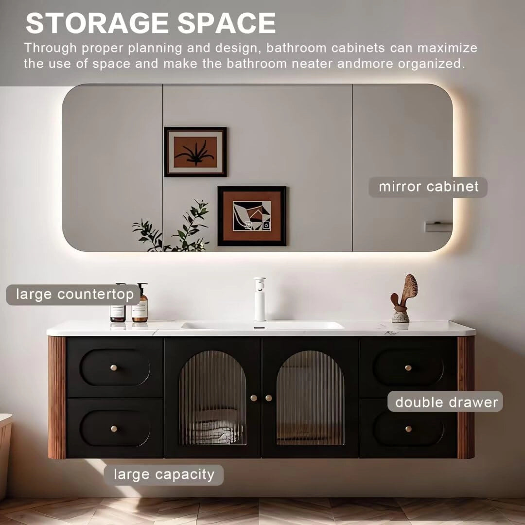 Ample Storage Space: Side drawers and a large central storage cabinet keep toiletries, small accessories, and other essentials neatly organized, making daily life more convenient while maintaining a tidy bathroom.
