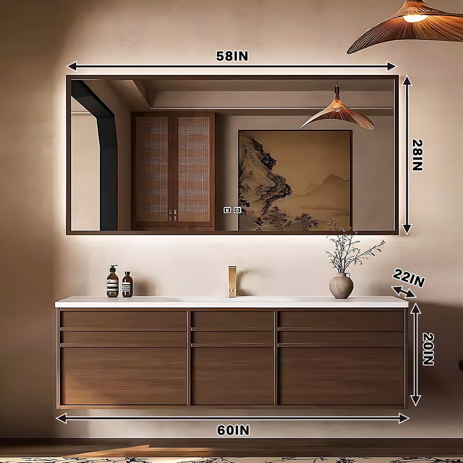 Smart Mirror: waterproof bath vanity features high-end materials that resist moisture damage, ensuring long-lasting beauty and functionality. Integrated with a smart mirror, it offers advanced features for convenience and efficiency, transforming your bathroom into a luxurious, modern space.