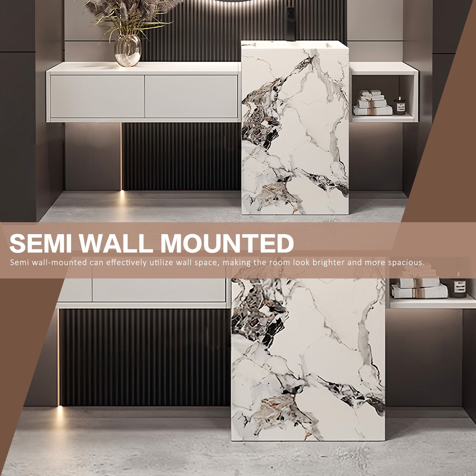 Unique Colors and Designs: Our carefully crafted bathroom vanity sets feature exquisite color designs that seamlessly blend geometric textured slate integrated sinks with divided drawers and open storage shelves for you to enjoy sophistication. This fusion embodies style, elegance and grandeur, adding a touch of luxury to your space. Immerse yourself in the tranquility of your bathroom vanity, creating a luxurious oasis where beauty and tranquility meet.