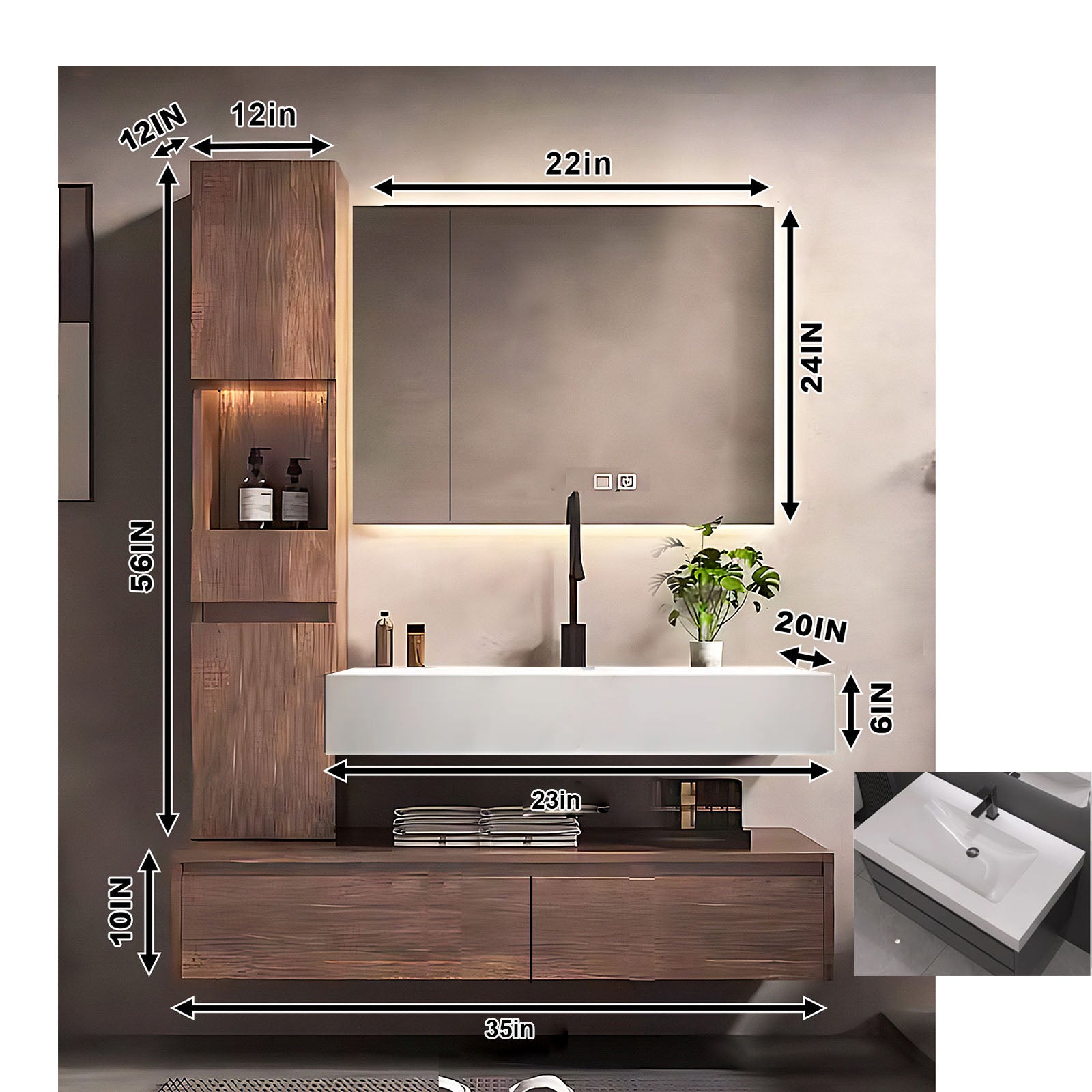 Durability: Waterproof material is Ideal for bathrooms, as it resists both moisture damage and heat from styling tools. The basin and countertop are crafted as a single unit, eliminating seams where water can accumulate. Solid wood exudes warmth, durability, and natural beauty, making it a perfect addition to any bathroom space. With its superior craftsmanship, it offers long-lasting performance and enhances your bathroom’s atmosphere.
