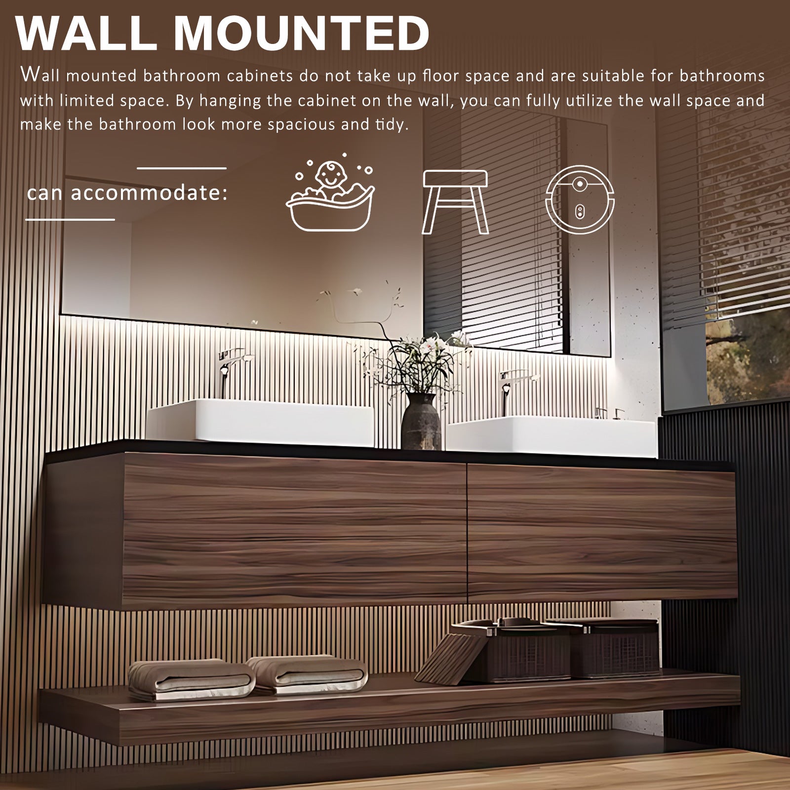 Wall-Mounted Installation: The wall-mounted, floating design creates a spacious, airy feel in your bathroom by freeing up floor space. This not only enhances the modern aesthetic but also makes it easier to clean beneath the vanity, maintaining a sleek and tidy environment.
