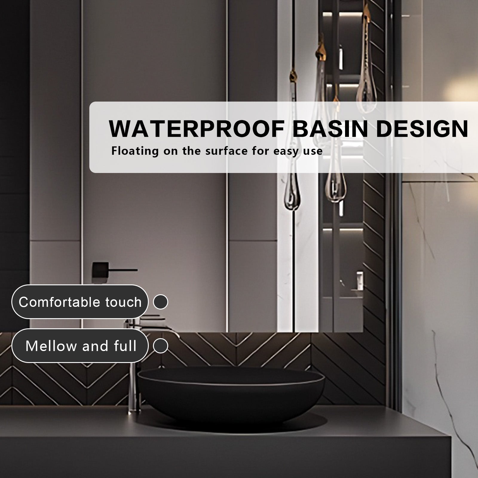 Dry-Wet Separation for Enhanced Convenience: The left side of the bathroom sink is designed with a large countertop, making it convenient for you to place toiletries and cosmetics. Paired with an intelligent defogging mirror above and a ceramic sink on the right, it separates dry and wet, easily achieving efficient use of space. Keep your fighting spirit and energy high every time you go out.