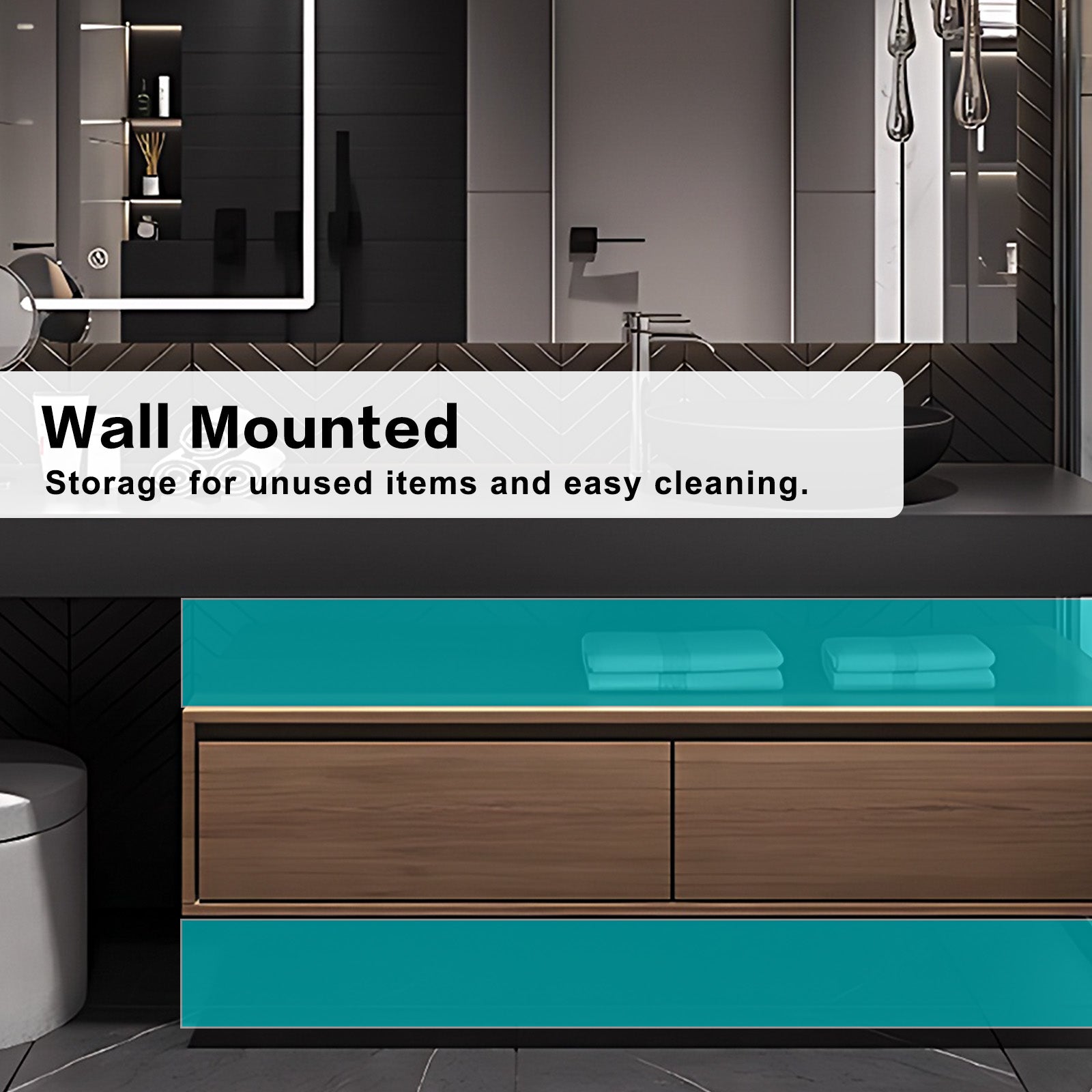 Brown Solid Wood Floating Storage: It not only adds a touch of warmth to the bathroom but also provides ample storage space. The open shelving on the upper layer allows for easy access to your daily bathroom essentials. The vanity's clever design incorporates dry-wet separation, ensuring a practical and functional layout. This feature helps maintain the cleanliness and tidiness of your bathroom, making it easier to clean and maintain.