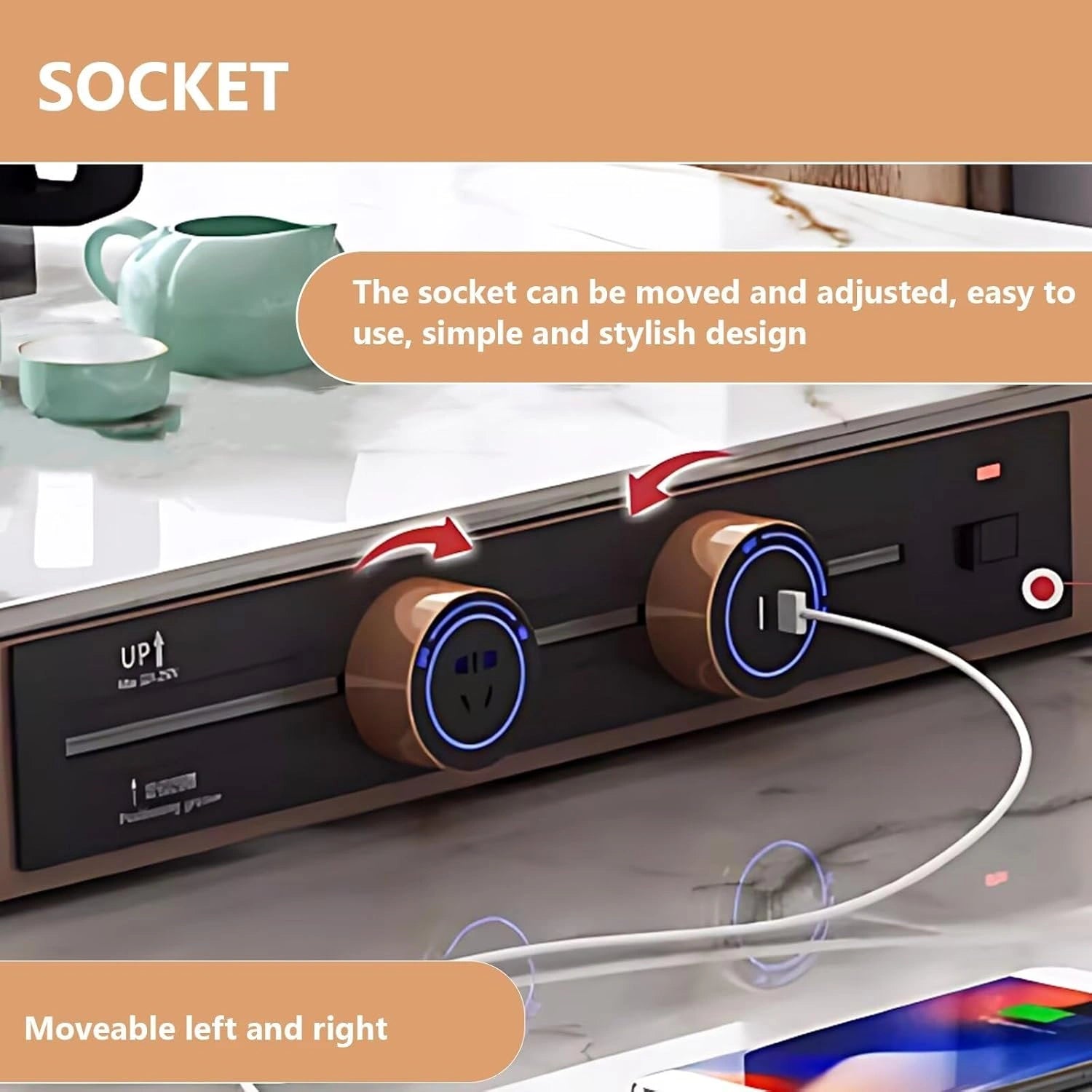 Sliding Rail Socket: Overcoming the limitations of traditional fixed-position sockets, this design uses a sliding rail to enable flexible adjustment of the socket’s placement. It provides hassle-free access to power for all your electrical appliances.