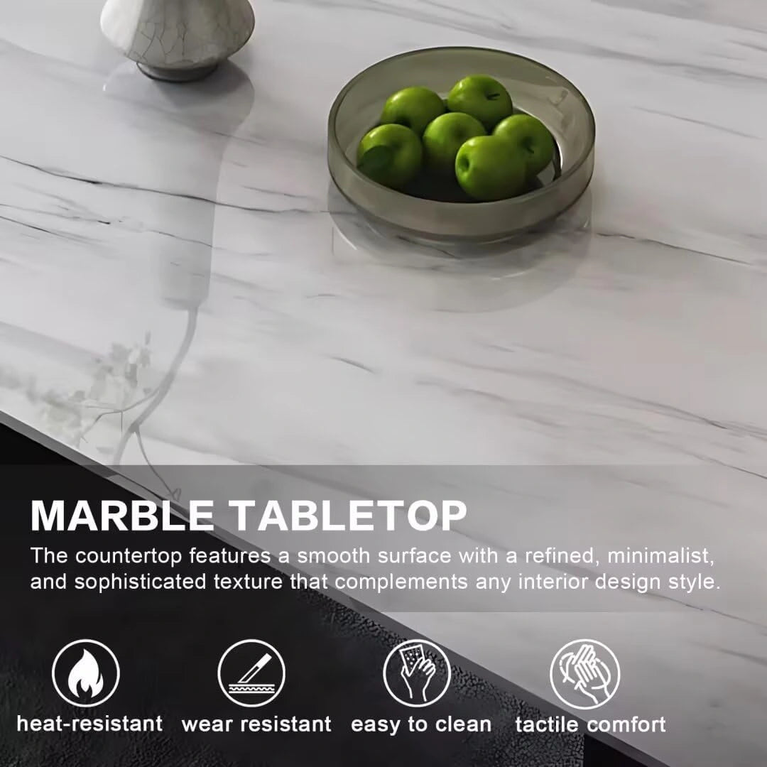 Glossy Textured Tabletop: The glossy surface features flowing natural patterns that showcase subtle layers as light refracts. Its smooth, seamless texture adds a strong sense of dynamism and ritual to your dining area, elevating every meal into a refined experience.