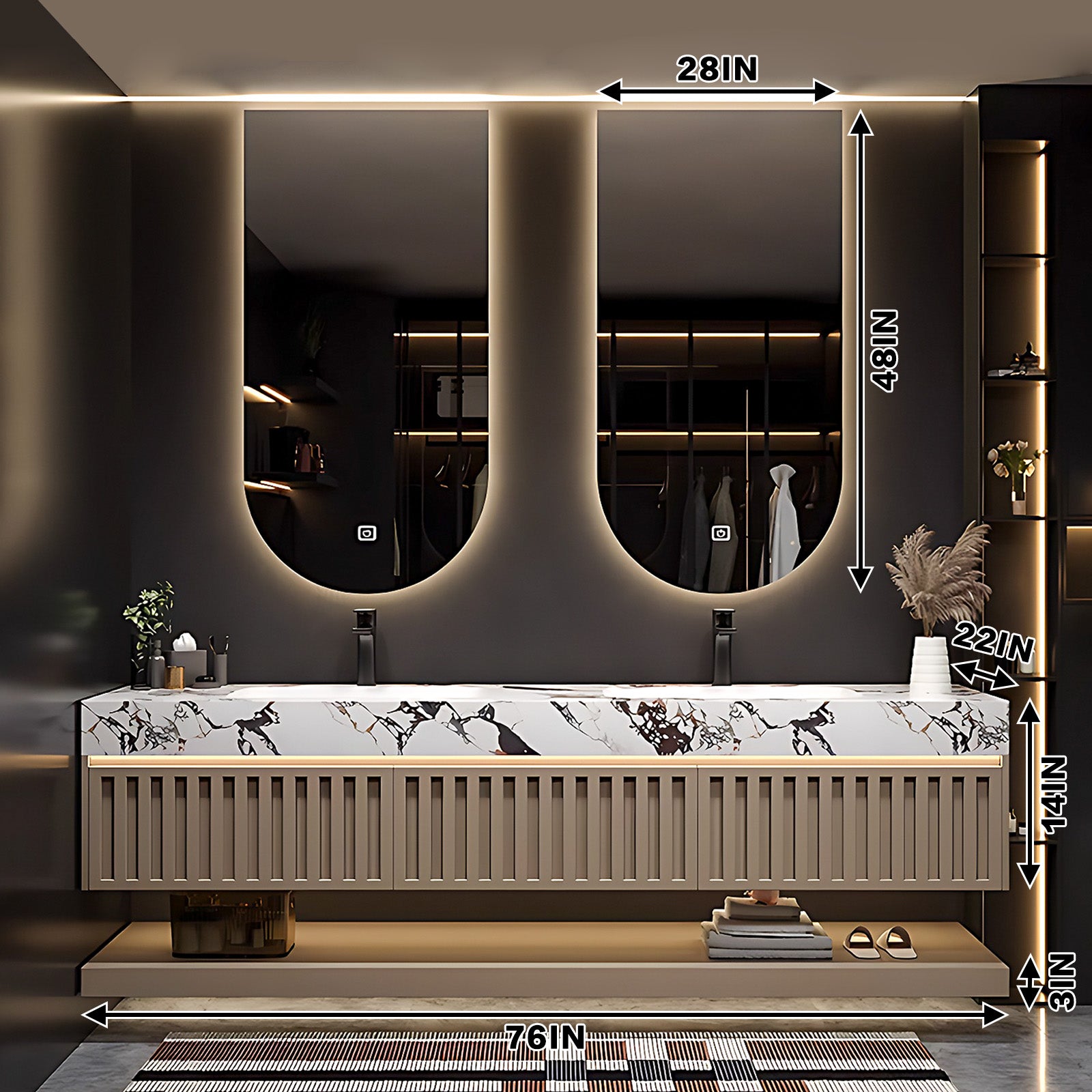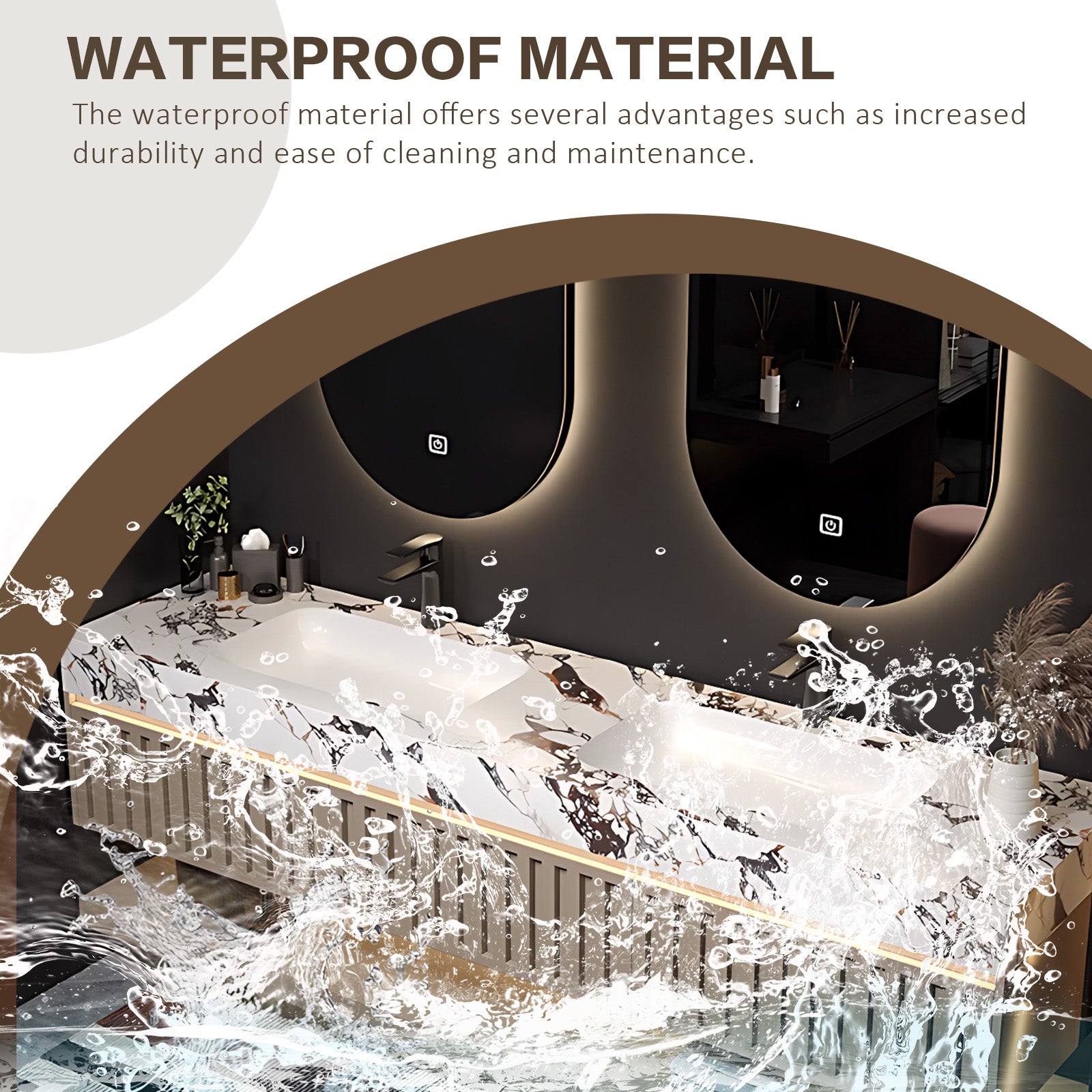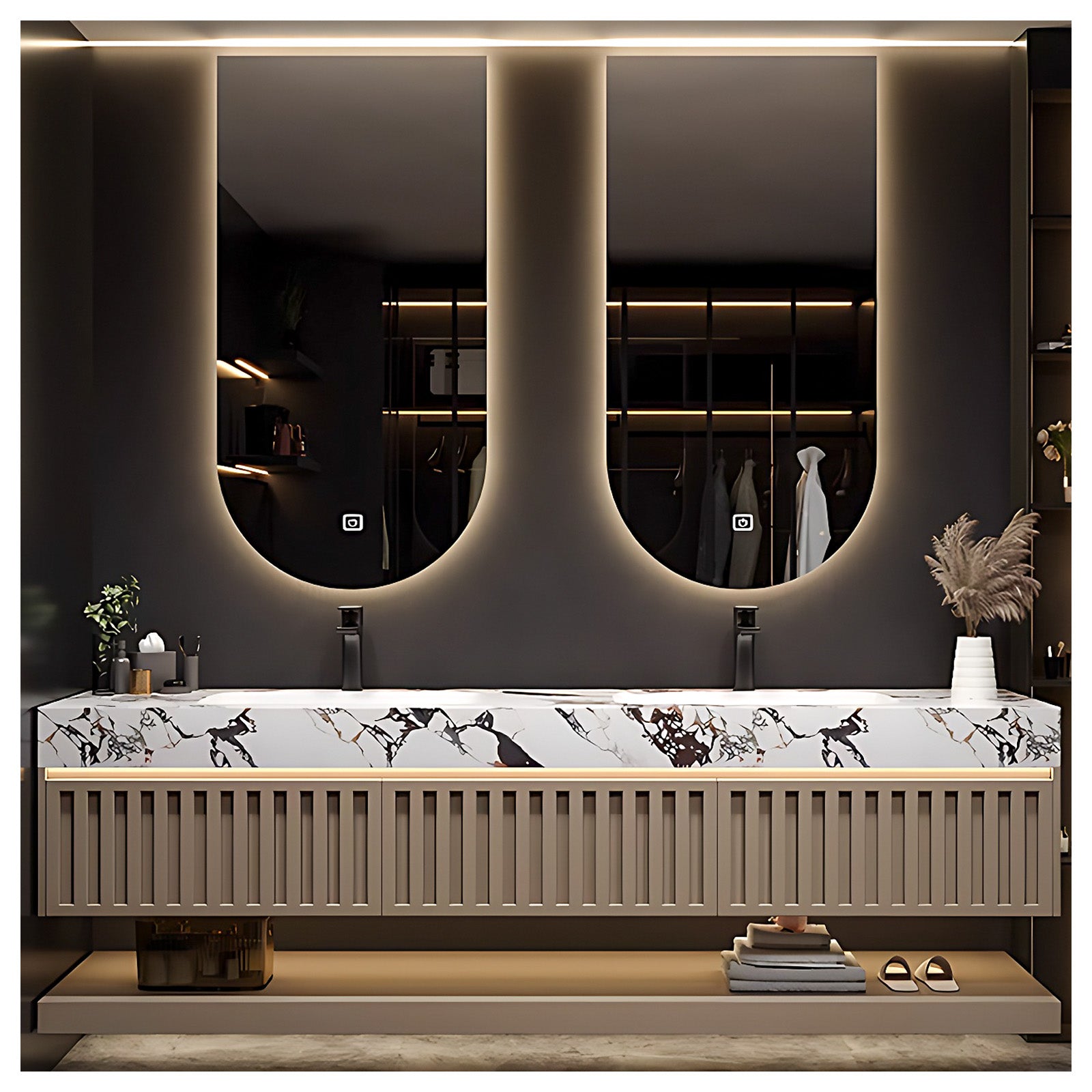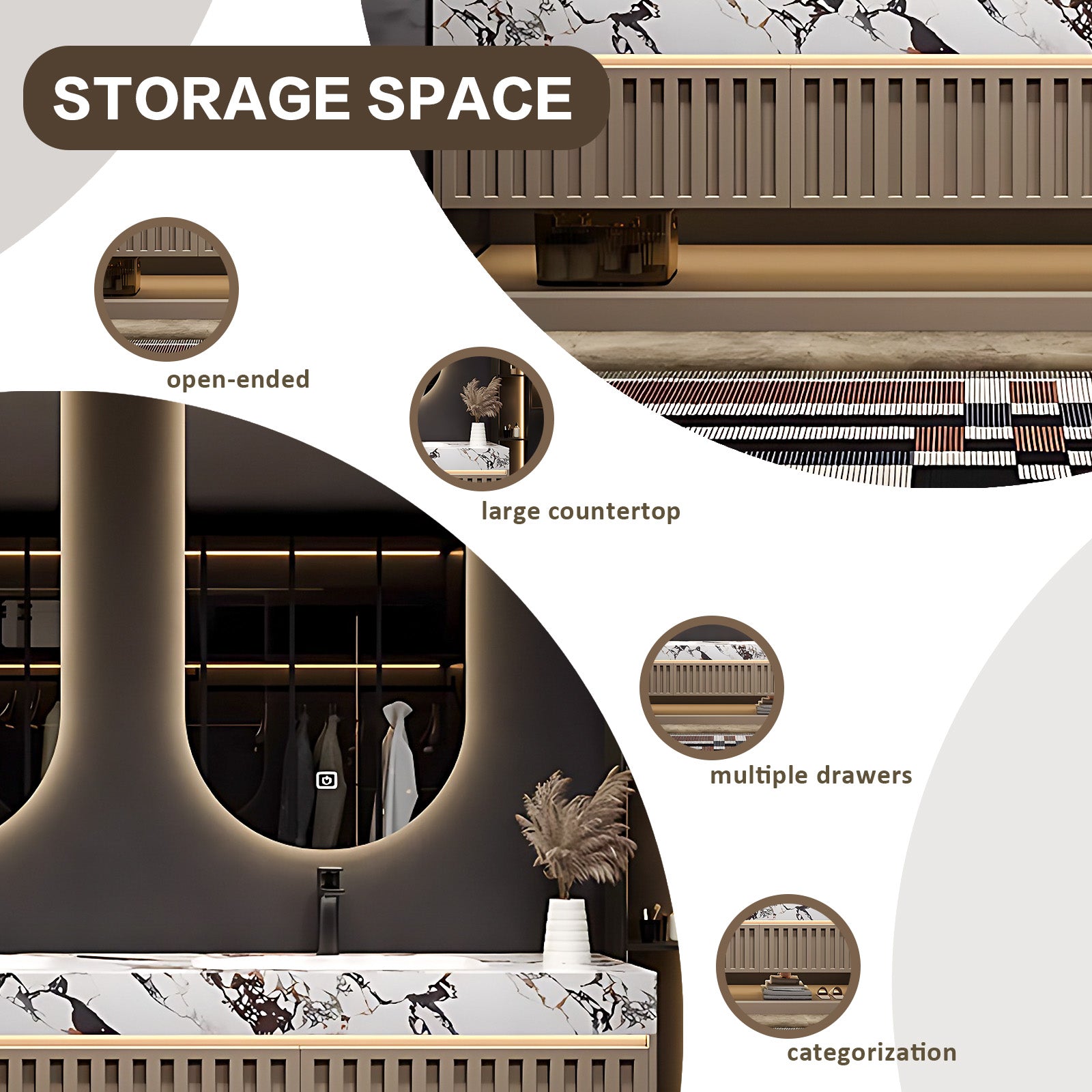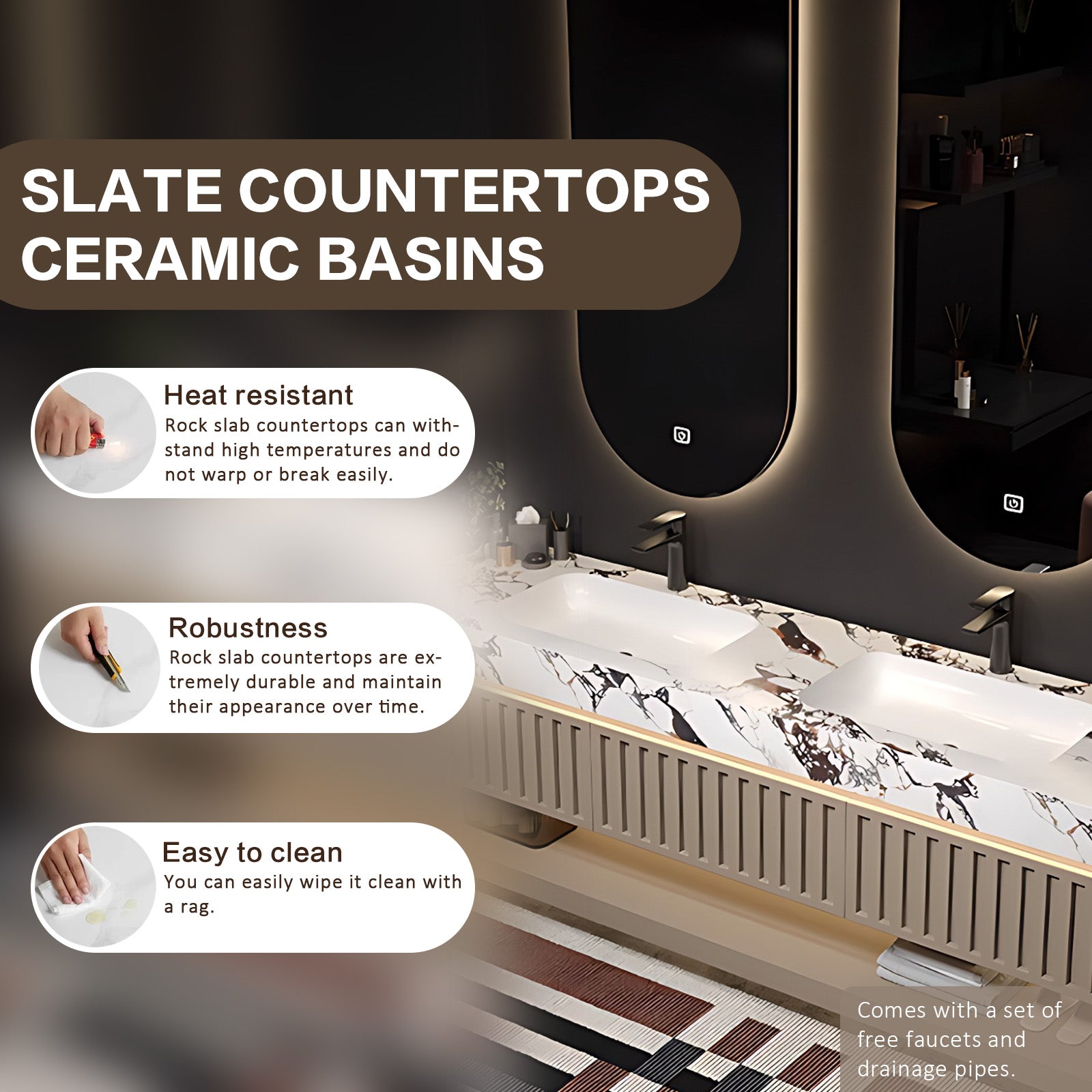 Modern Unique Design: Our avant-garde bathroom collections offer an unprecedented blend of luxury and simplicity for an extraordinary experience. Our meticulous attention to detail transcends traditional boundaries to provide you with a dynamic and unforgettable experience. Created with keen creativity, our striped drawer fronts feature rich coffee tones that complement our stylish slate tops with stunning marble veining.