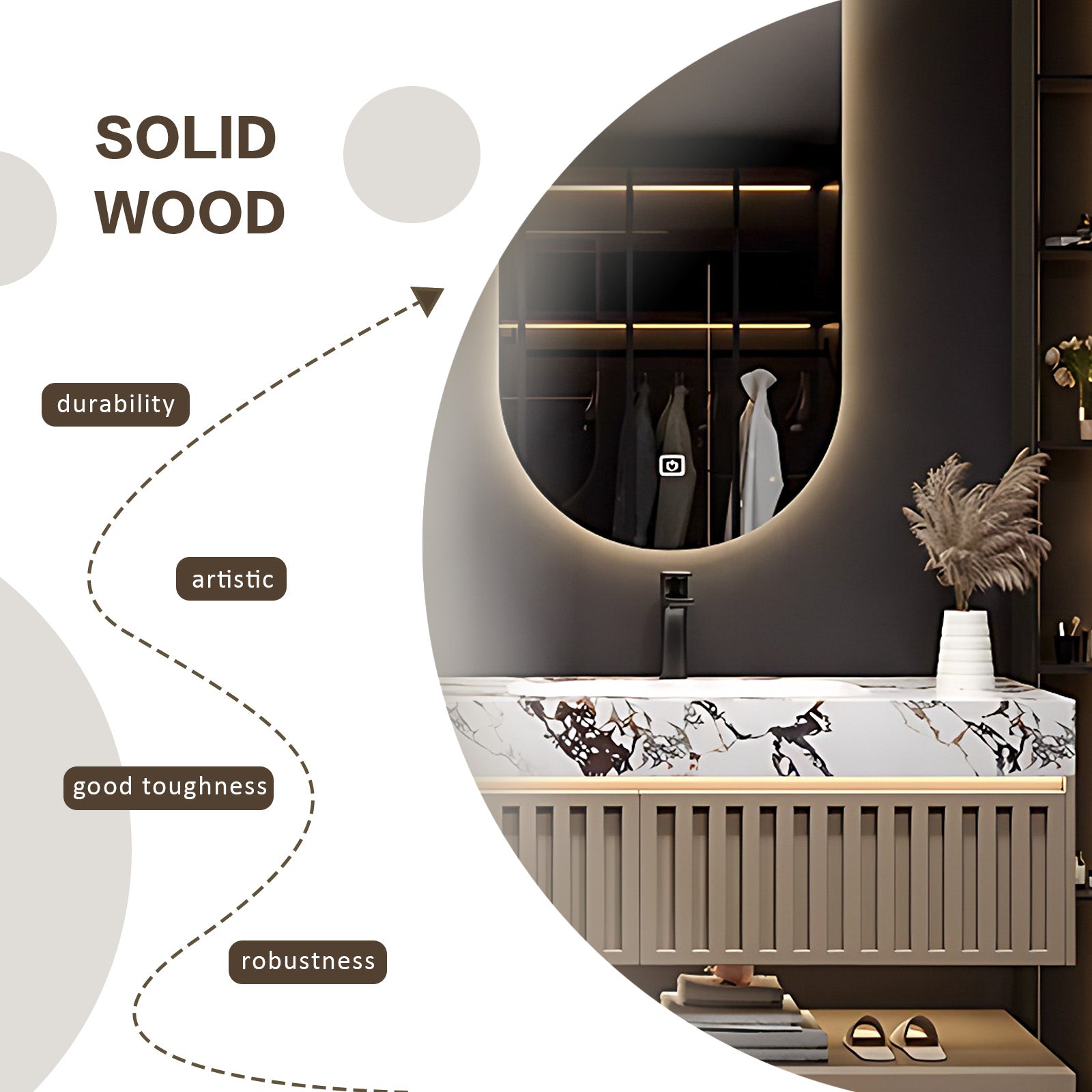 Solid Wood High Quality Material: Our selection of solid wood embodies the epitome of luxury, solid wood is known not only for its exquisite beauty but also for its long-lasting durability. Rest assured, our carefully selected, high-quality wood will stand the test of time. With their waterproof capabilities, our bathroom cabinets not only enhance their aesthetics but also extend their lifespan, bringing lasting elegance to your space.