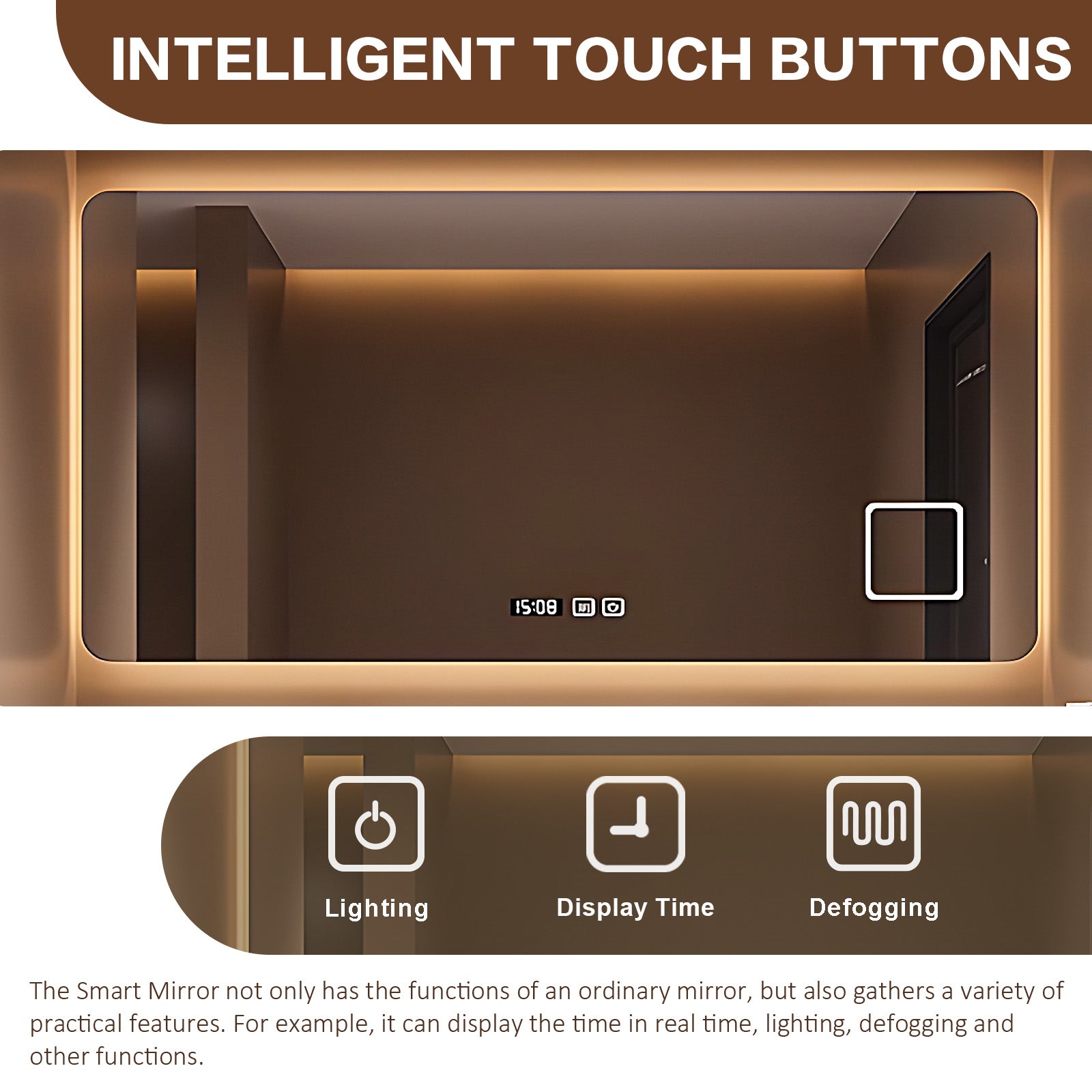 Intelligent Defogger Mirror: Elevate your grooming experience with our innovative Smart Backlit Mirror. Featuring LED technology and a unique design, this mirror adds a sophisticated flair to your bathroom decor. Bid farewell to foggy reflections with the convenient one-click defogger function, ensuring crystal-clear visibility even in steamy conditions.