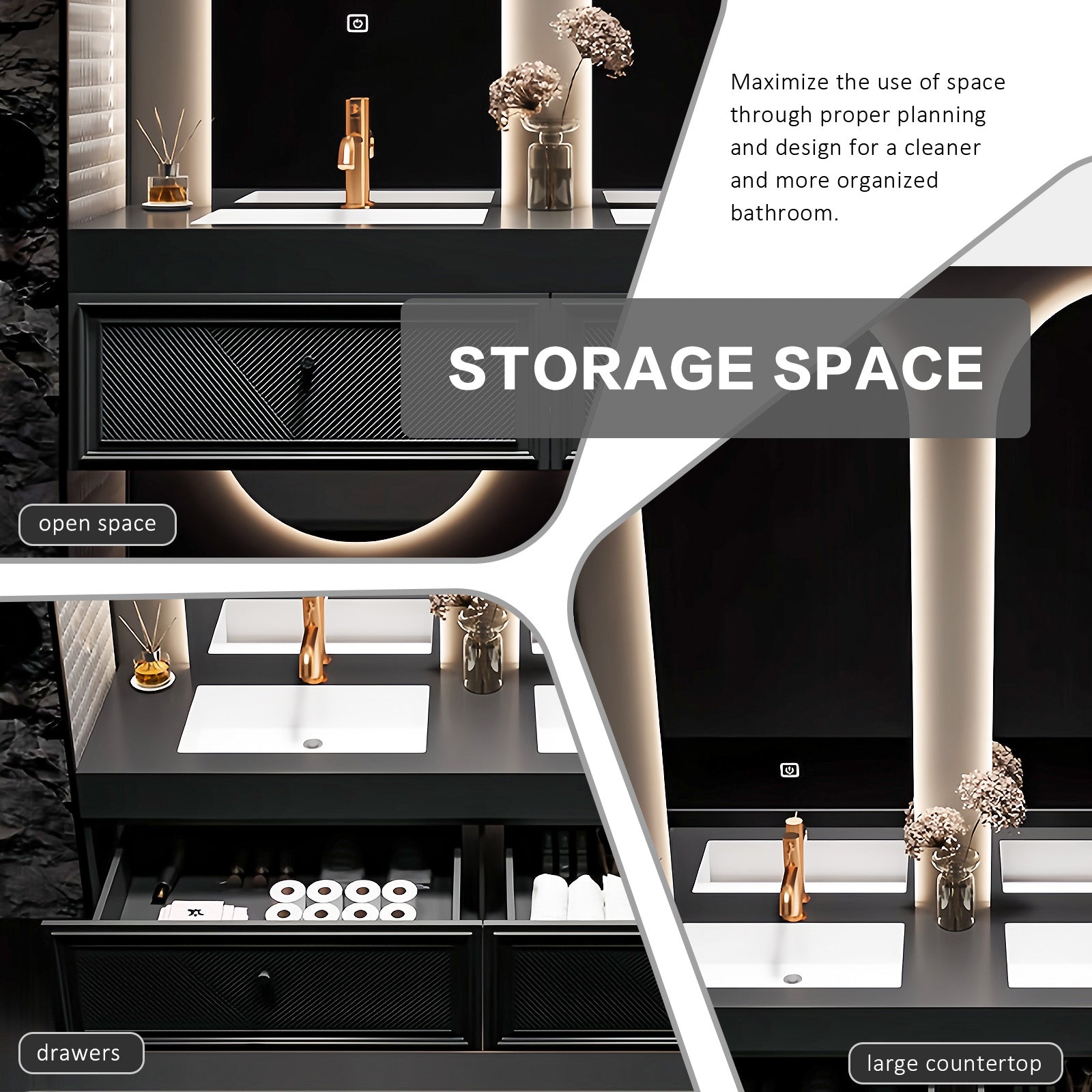 High-End Design for Double Sinks: Our luxury double sink designs are tailored to fit the needs of the entire home, allowing you to enjoy the epitome of convenience. Say goodbye to waiting in line and embrace intimate moments at the sink, where every detail of our thoughtfully designed bathroom cabinets redefines luxury living. Elevate your daily routine into a pampering experience like no other.