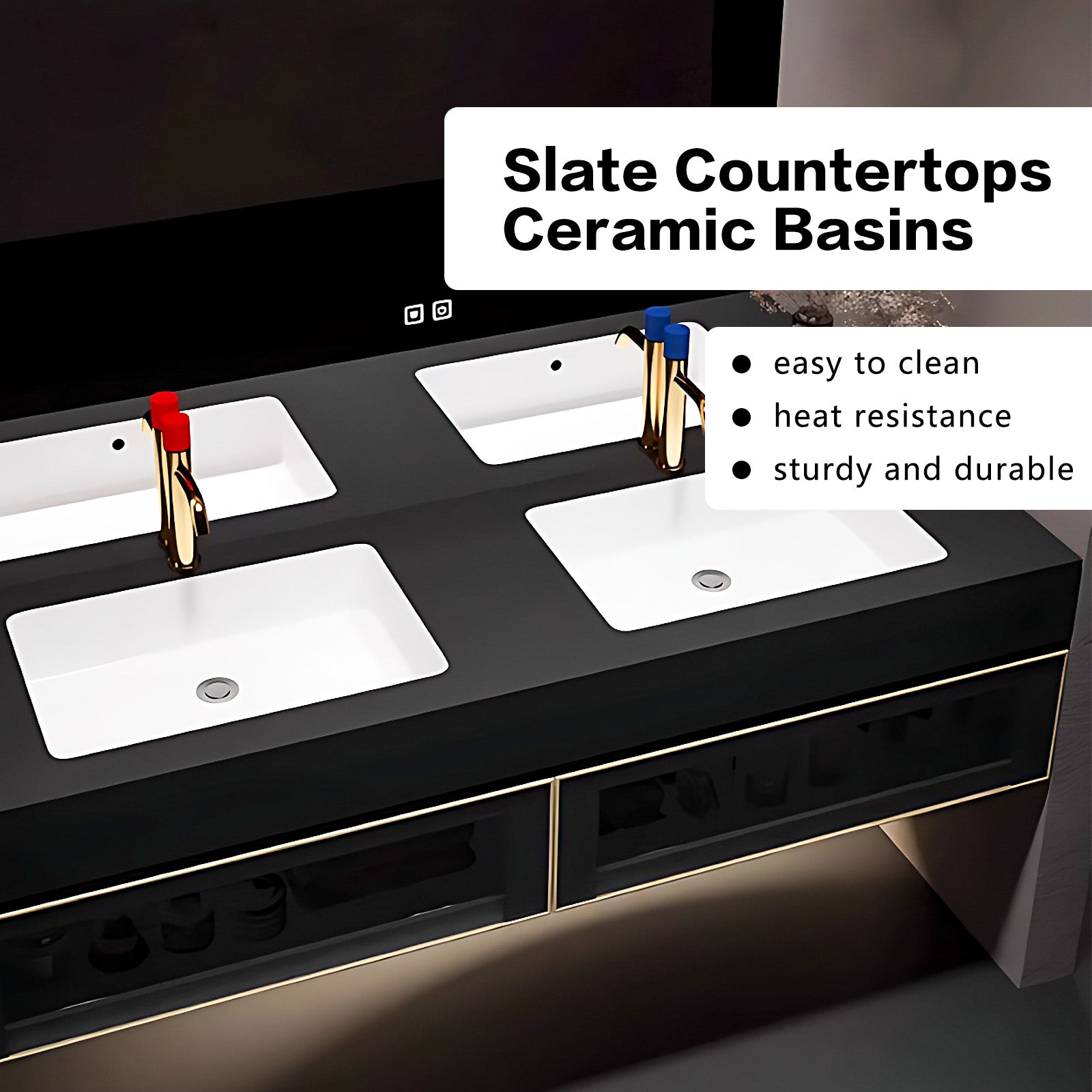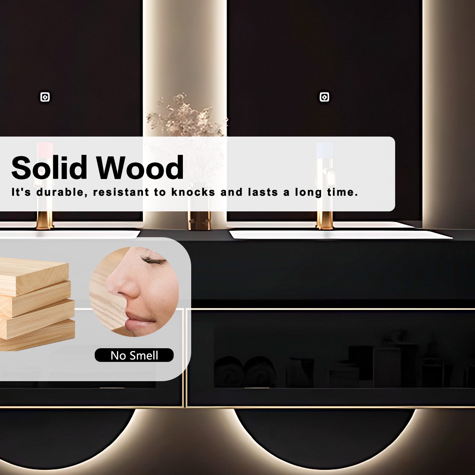 Dual Sink Functionality: Enhance your bathroom's functionality with our double sink vanity, featuring two sinks and ceramic basins. This design not only offers enhanced convenience over a single sink but also reduces morning congestion and facilitates shared washing routines with family members. Enjoy the luxury of ample space and streamlined efficiency, ensuring a seamless start to your day without compromising on comfort or convenience.