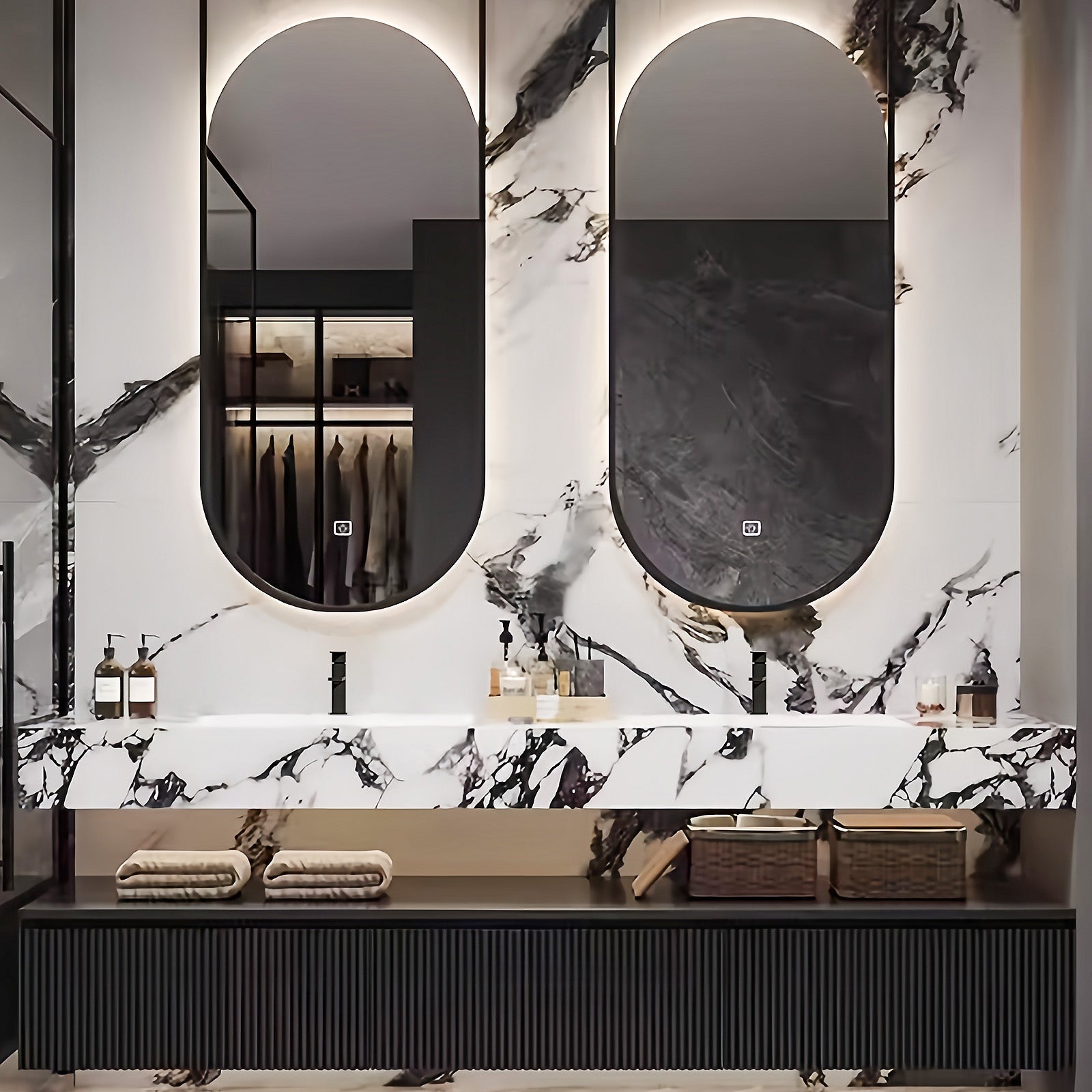 Irregular Lighting Mirror :Transform your beauty routine with our custom designed irregular mirrors, carefully crafted to enhance your experience. Enhanced by ambient lighting, these mirrors stand out from traditional mirrors, offering unparalleled clarity and unique design aesthetics. With user-friendly one-touch switches, they easily create a bright and spacious atmosphere, ensuring an unrivaled beauty experience.