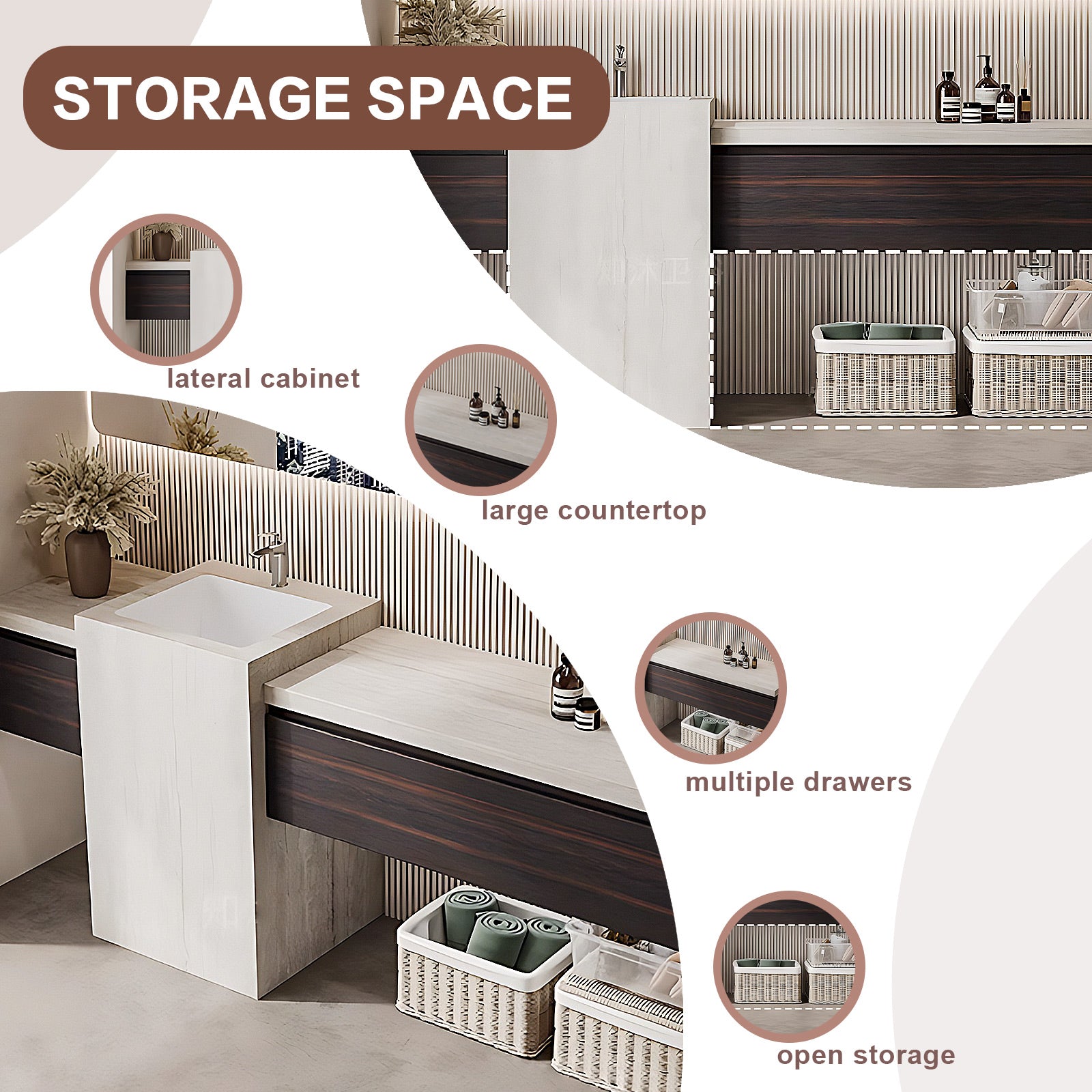 Wide Countertop: Extra space for organizing grooming tools, cosmetics, or decor without clutter.