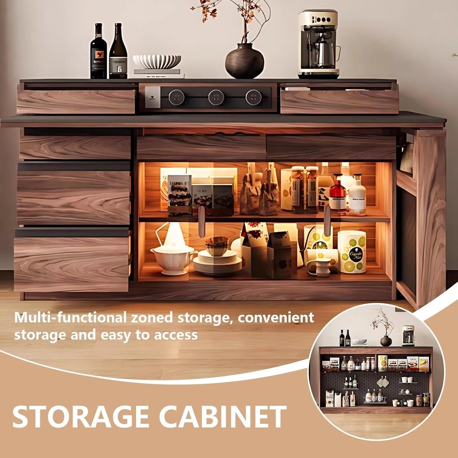 Light Luxury Style: Integrating the island and tabletop into a seamless whole, it features a sleek black countertop exuding calm sophistication and a walnut wood cabinet in warm brown with exquisite natural grain. The clean, streamlined design is imbued with understated luxury throughout.