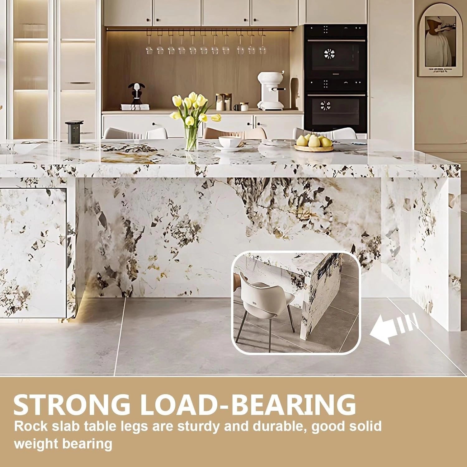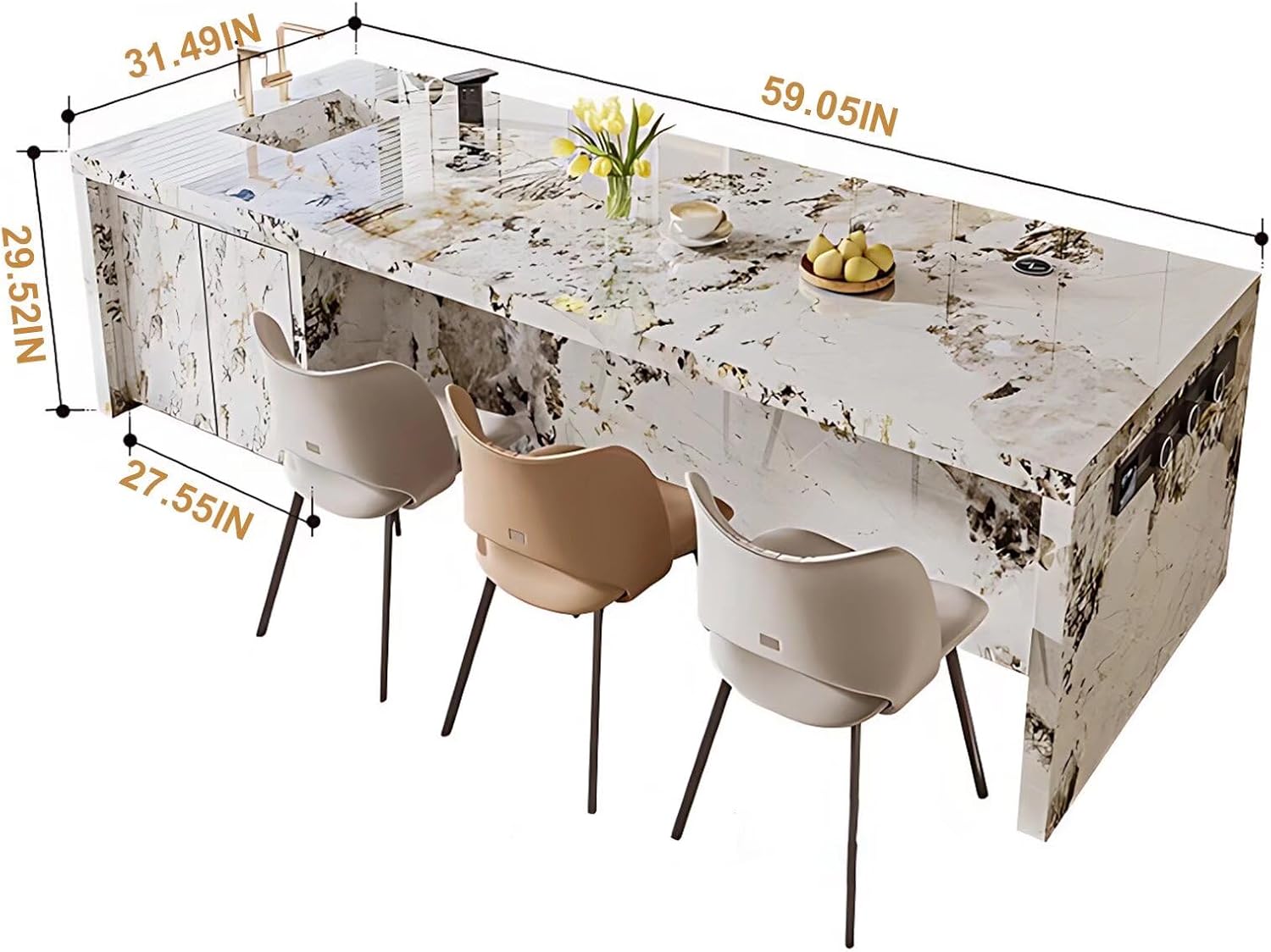 Superb Make: This product is made of a solid rock plate surface which is highly durable. The dining table base and the inside of the island are also made from rock plate, which is very durable and long lasting, plus it can withstand heavy loads