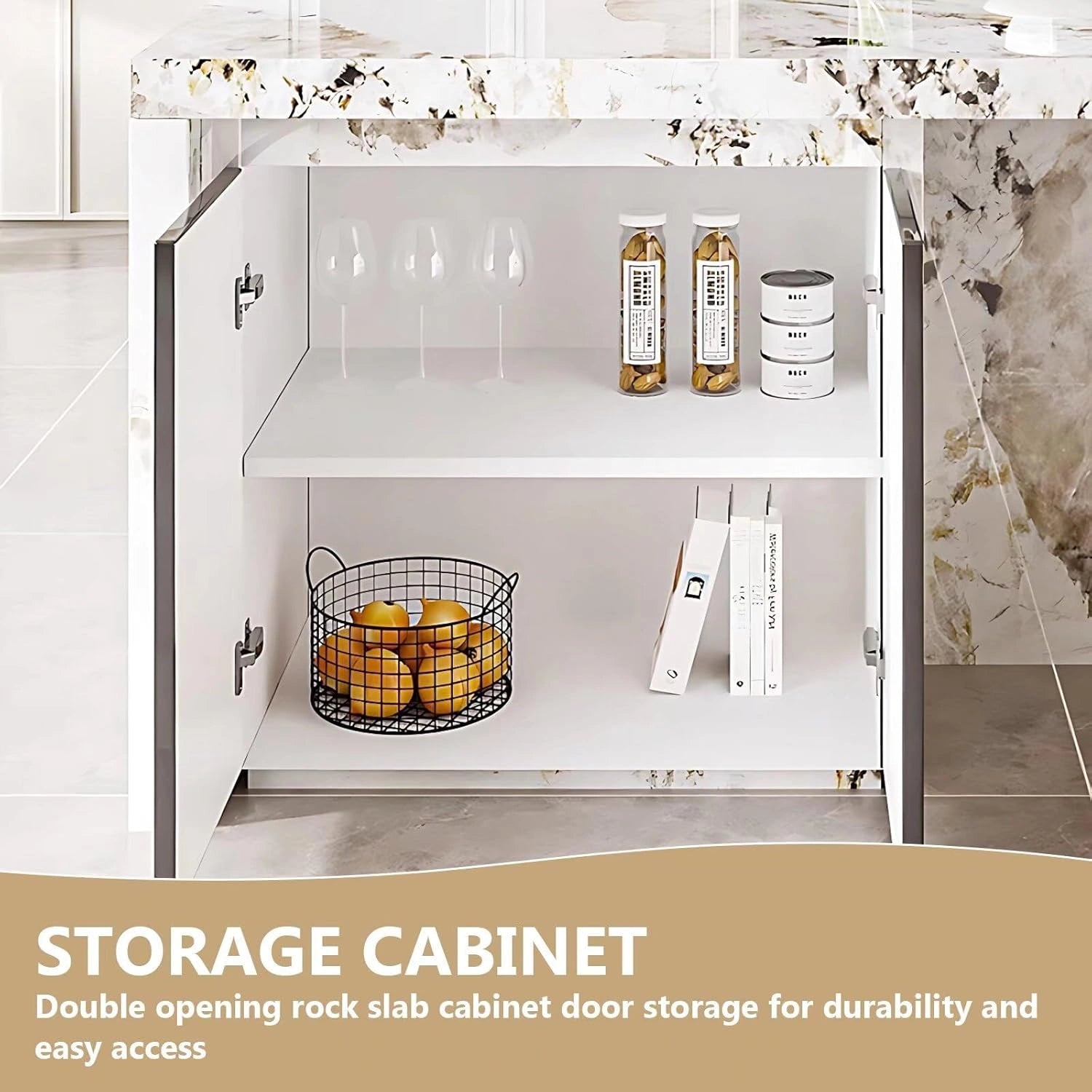 Generous Pantry Space: The island consists of large cabinets ideal for storing pots, pans and all kitchen needs. The availability of space on the working space ensures you can quickly get hold of and organize anything you need, making things a lot easier